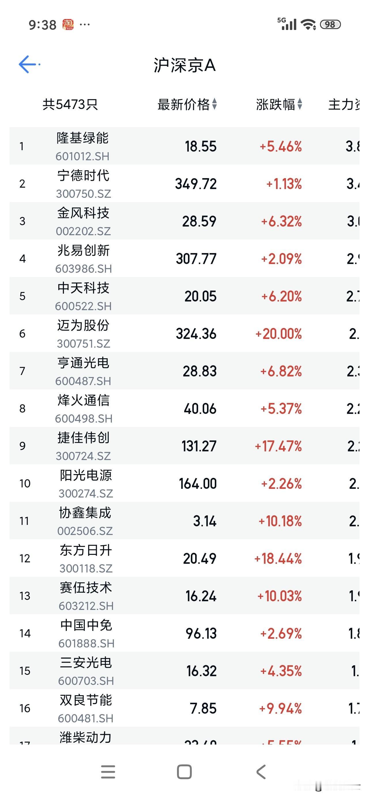 发生什么情况了,一开盘,隆基就冲到两市资金流入第一[笑哭]而且不止隆基,今天一开盘,光伏板块就占市场资金流入的c位[赞] 一般做自媒体的有了一定的粉丝基础,正常就要开始收割粉丝,而我就觉得收割粉丝干什么?大家都是朋友,就这么不充斥利益的交往下去,彼此无拘无束的,岂不是快活自在吗[笑哭] 人生短短几十年,能遇到并相识,其实已经是很大的缘分了。反正我始终是认为大家这里有我累世的父母子女,亲朋好友等。至于其中的道理涉及修行层面,没法写,写了会被限流有封号的风险[捂脸]