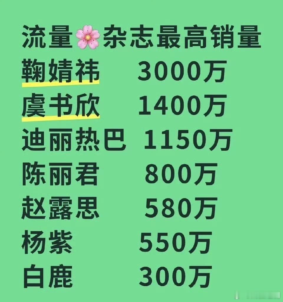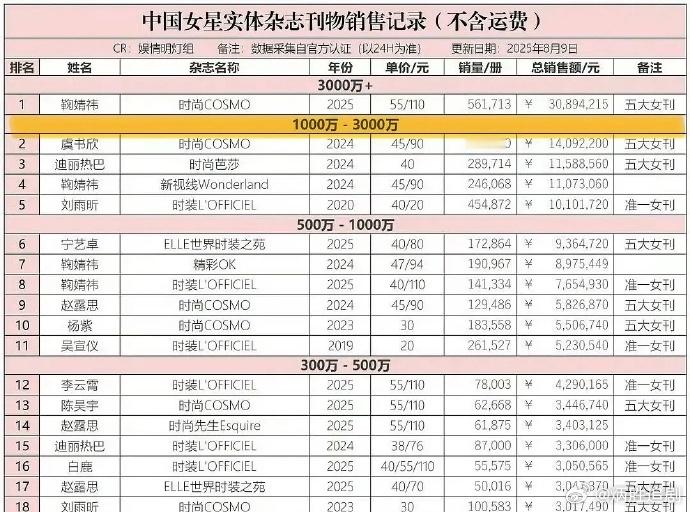 陈丽君杂志销量破千万了,这个数据还挺重要的,代表着她的流量已经很大了,市场号召力可以的,接下来应该商务资源、影视资源都要升级了。厉害👍