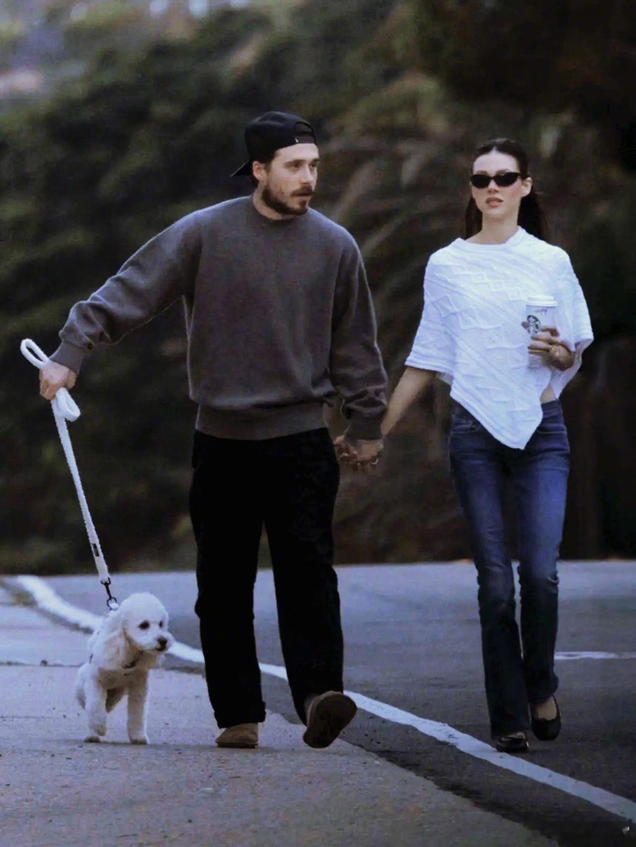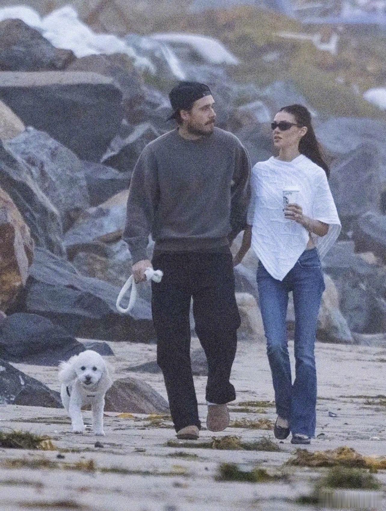 贝克汉姆大儿子发文控诉爸妈后首次公开露面,和妻子在海滩开心散步遛狗