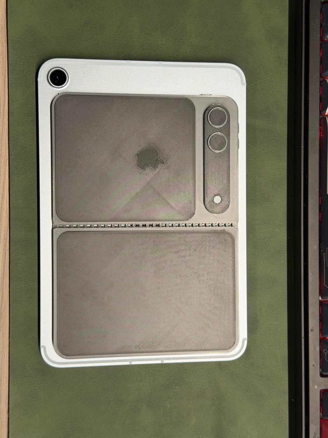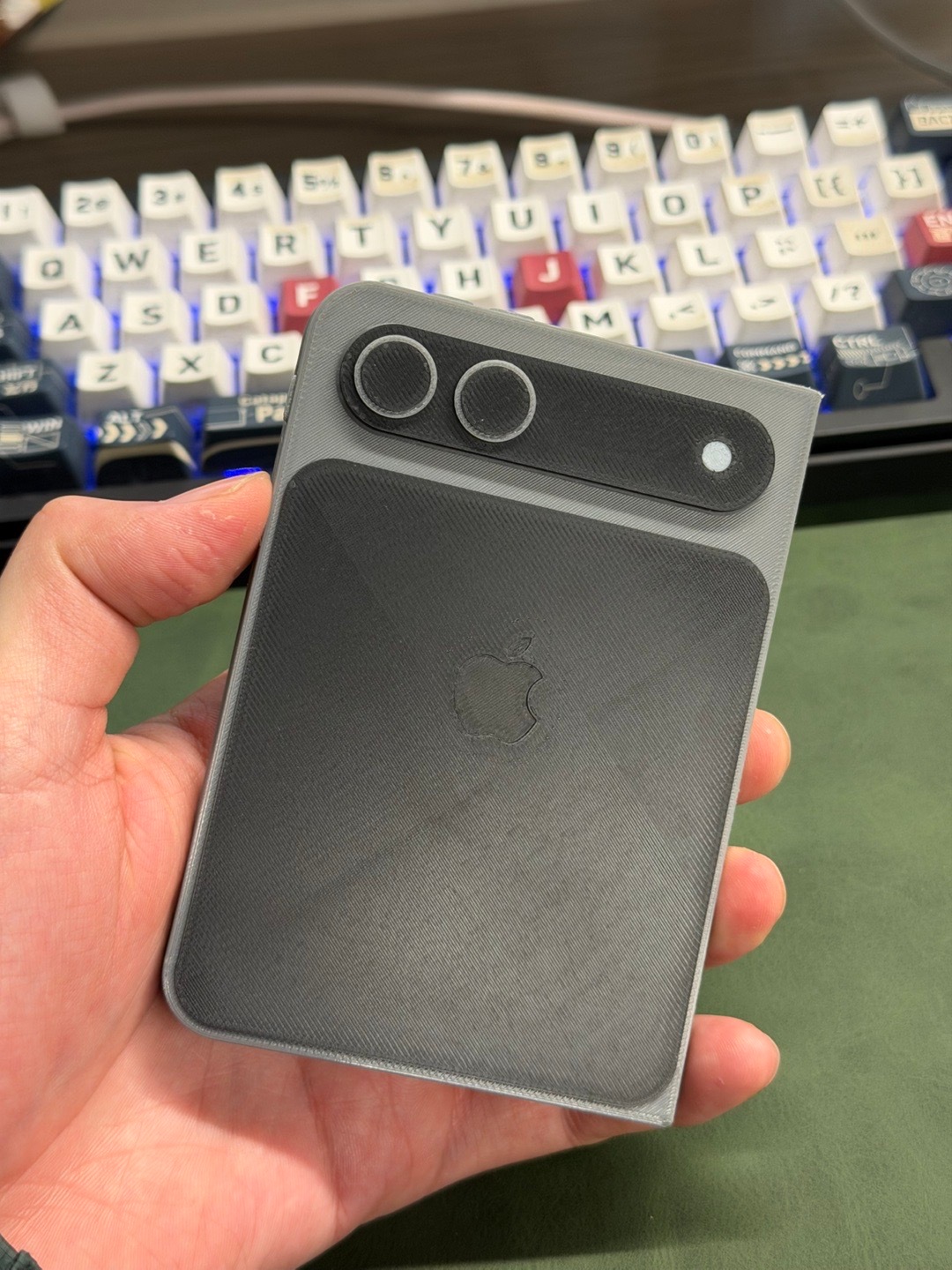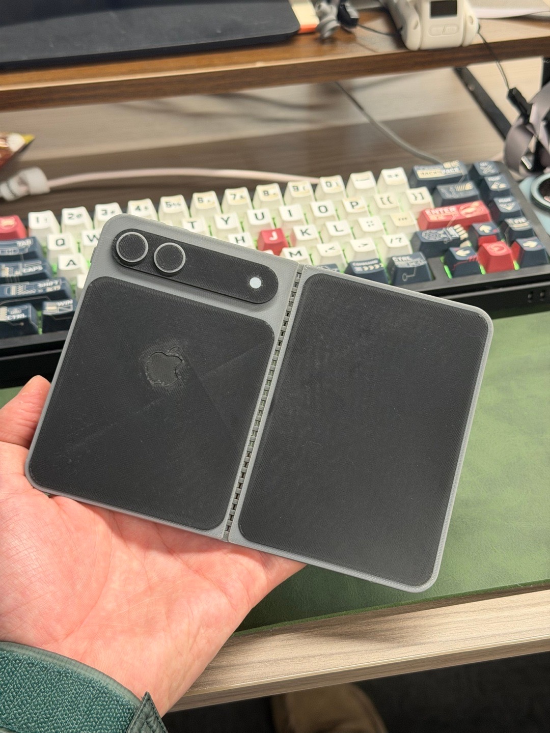 iPhone 不是意思了哈,iPhone Fold提前上手了哈老实说真的好宽呀这个尺寸跟华为的Pura X还不太一样手感跟感官都不一样,华为Pura X的手感真的不错!iPhone这个真的一般般机型还是有点宽的展开的话比iPad mini会小一点这个3D打印还是有点粗糙了看看Apple会怎么把它处理得跟精致一点吧
