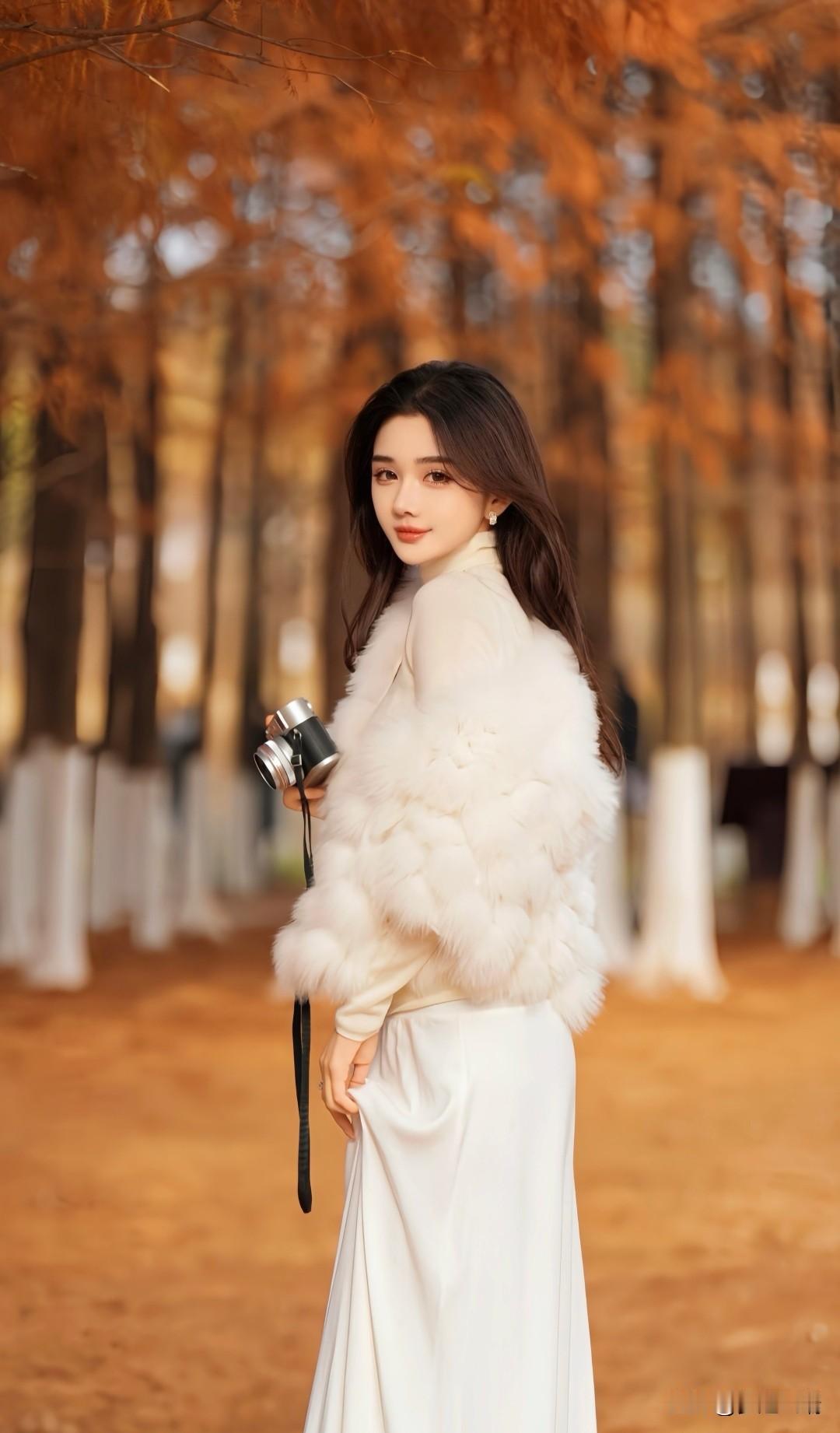 冬日仙境,雪中漫步,梦幻白裙,轻盈飘逸。