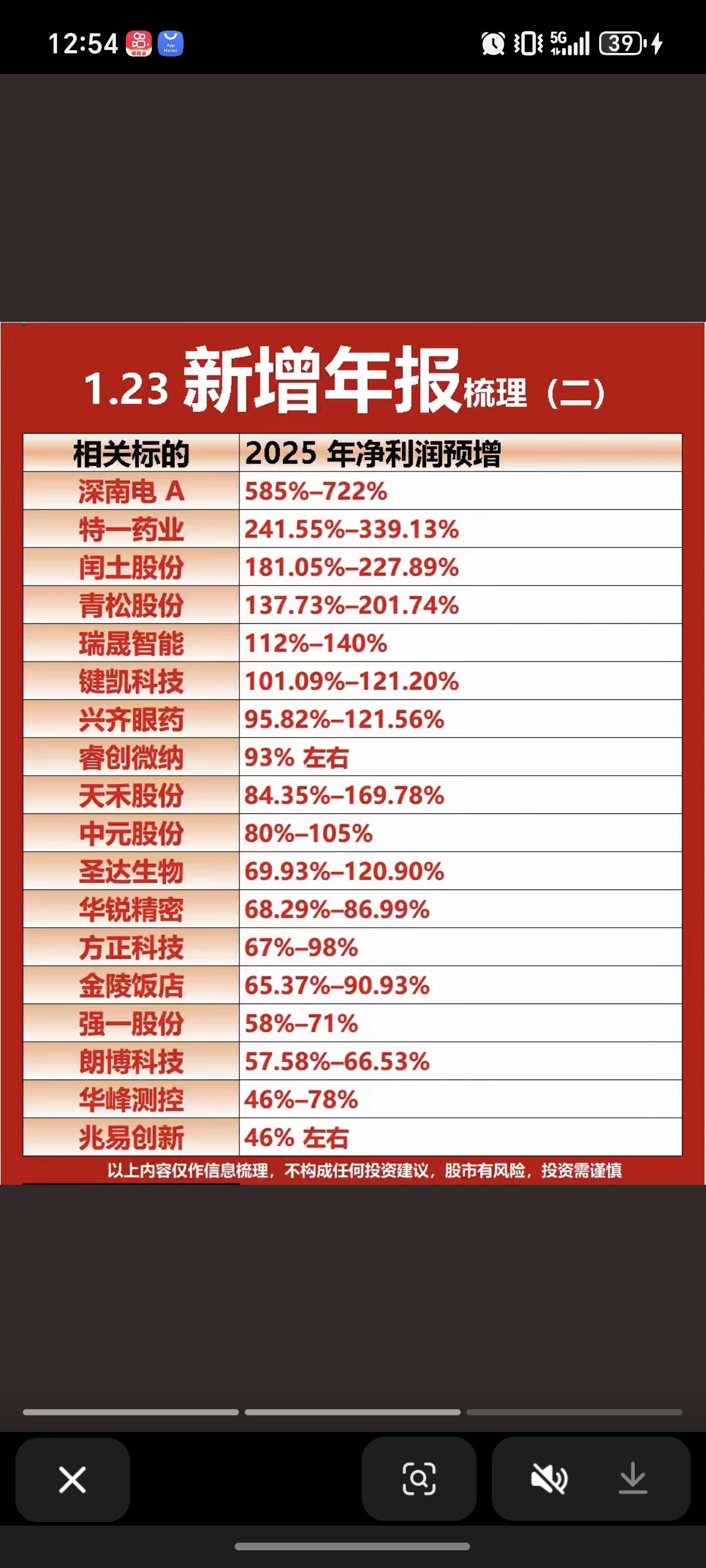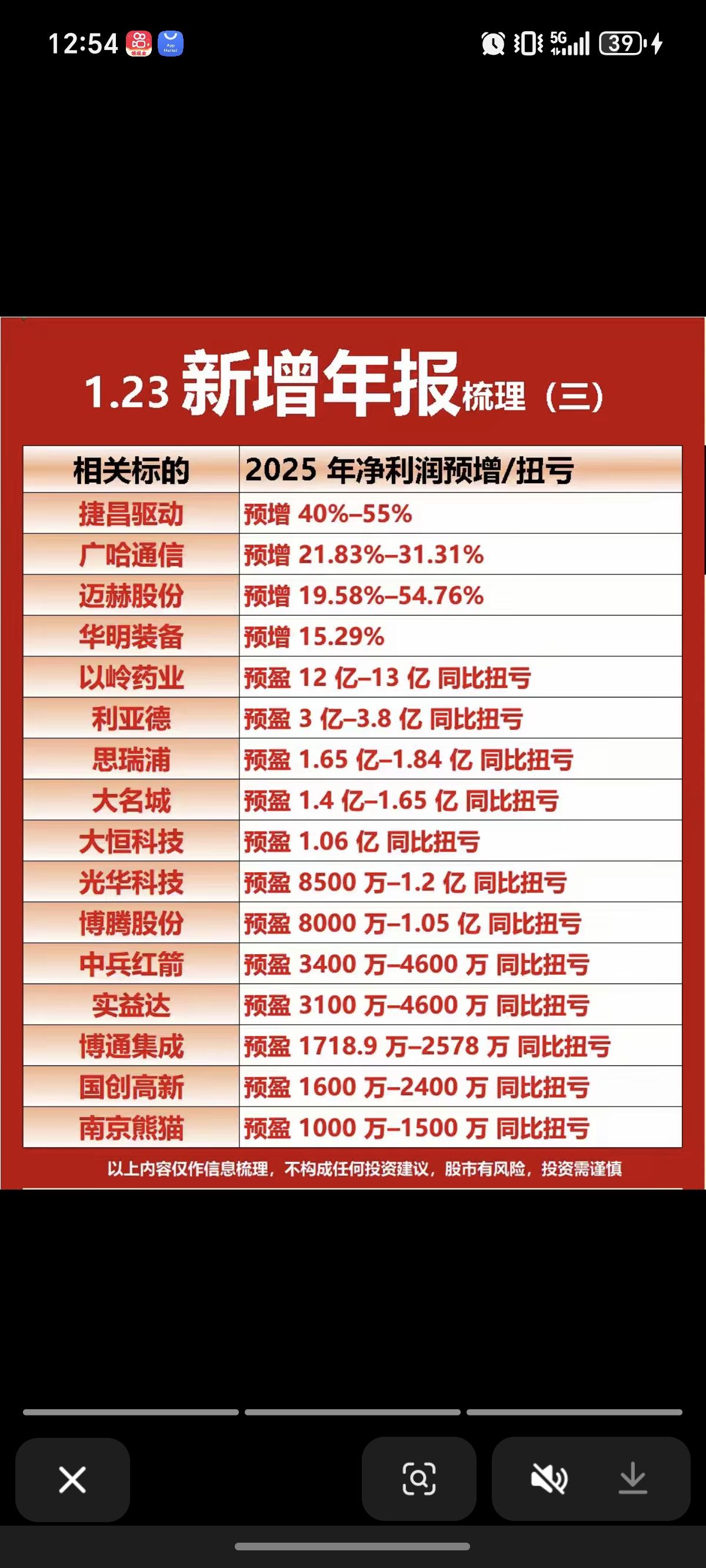 1.23周五 最新:上市公司年报业绩预告 55家公司披露年报业绩预告。 业绩亏损股,特别是连续多年亏损股,需要特别警惕!