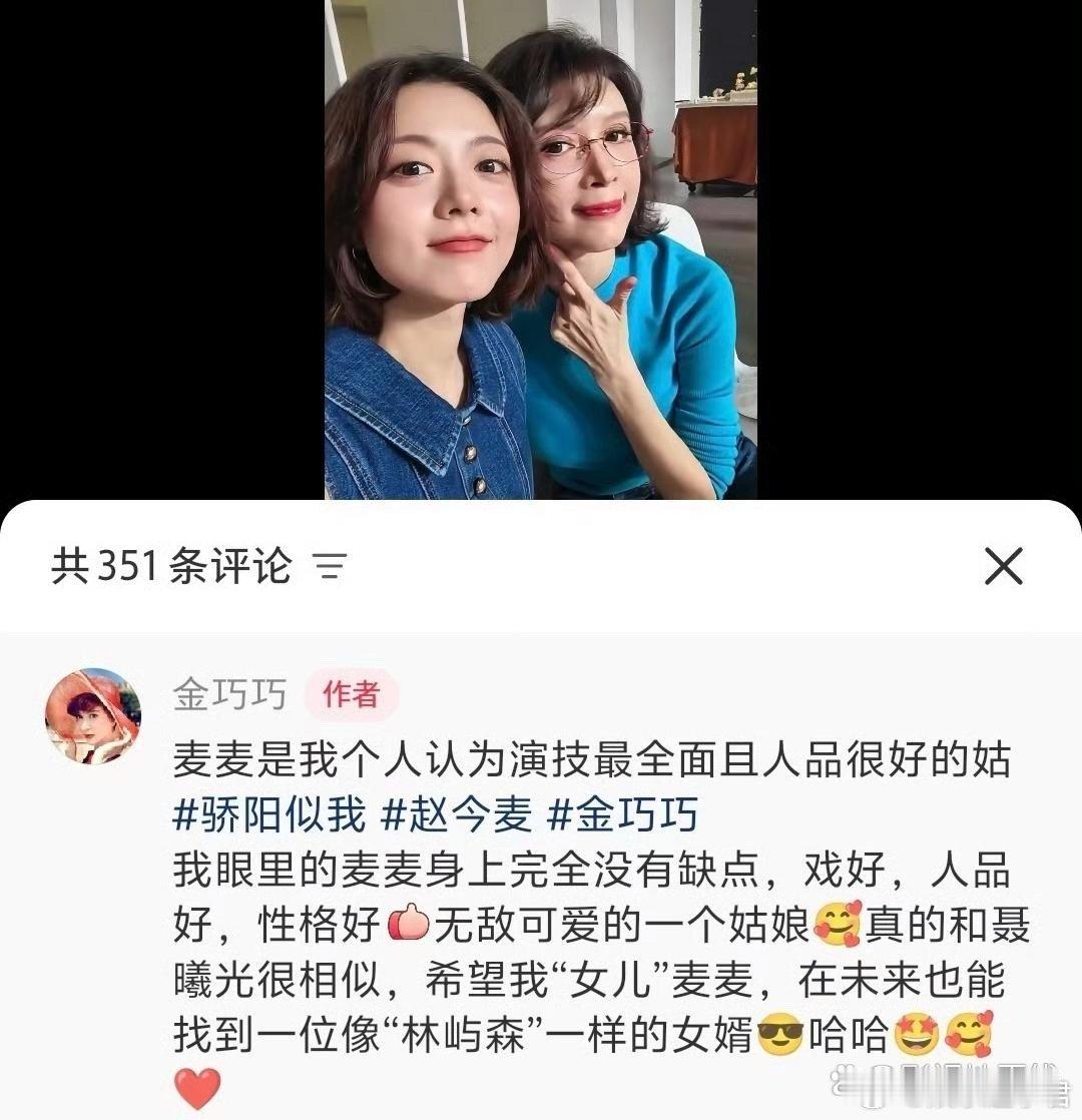 剧中饰演聂曦光妈妈的金巧巧说,赵今麦是她个人认为演技最全面而且人品很好的姑娘,“我眼里的麦麦身上完全没有缺点,戏好,人品好,性格好,无敌可爱的一个姑娘。