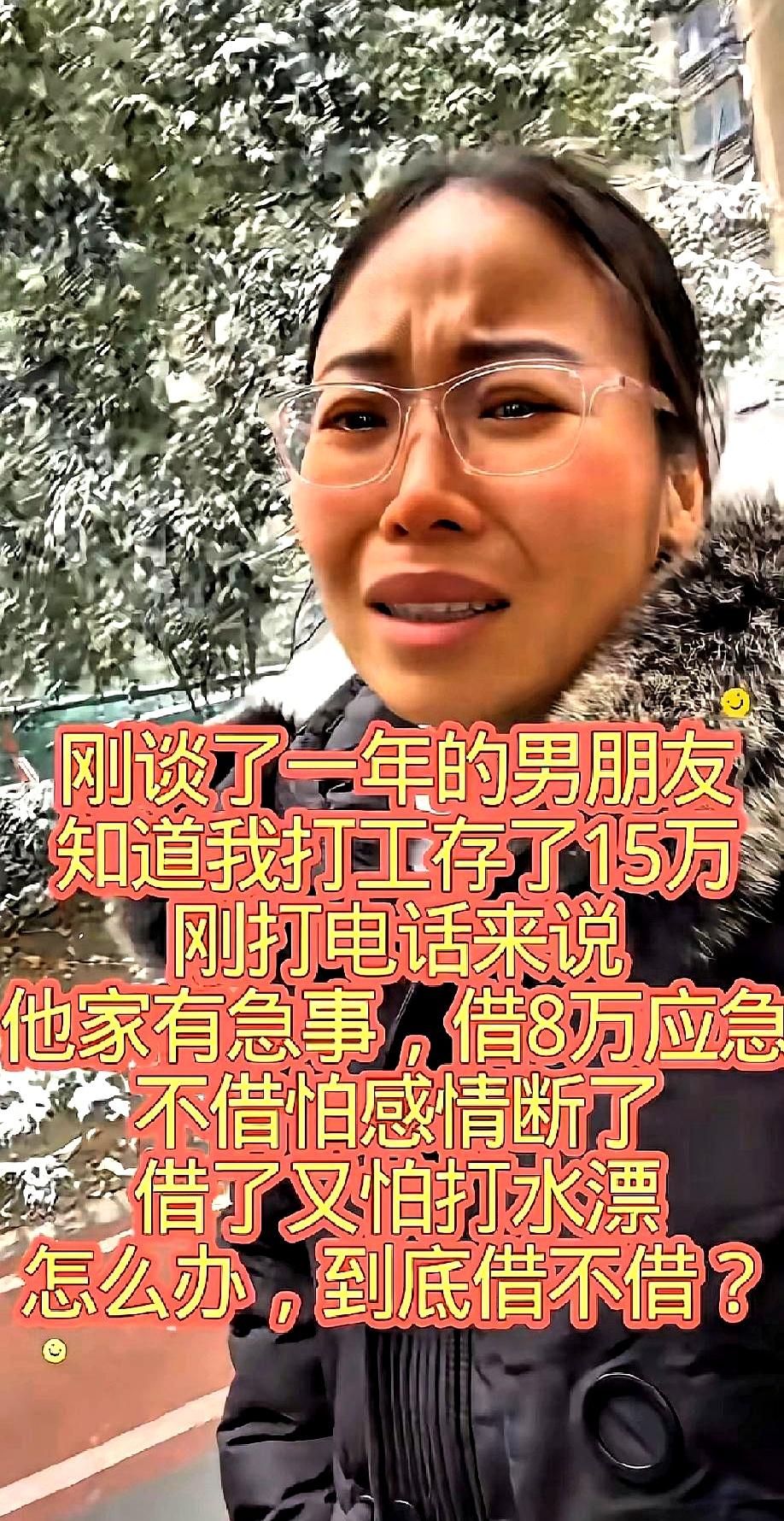 刚刷到一个帖子,一女孩在网上求助, 说是谈了一年的男朋友知道我打工赚了15万,刚打电话说他家里有急事,借8万应急,不借怕感情断了见了,借了又怕打水漂,到底借不借…… 这事儿其实挺好判断的,咱们把逻辑理一理。 这15万是姑娘打工攒下来的,大家都知道打工赚钱不容易,那是省吃俭用存的老婆本。 谈了一年,说长不长说短不短,但要说感情深厚到能随便拿出一半身家去填坑,我看未必。 真正的急事,通常都会先找父母、找亲戚凑,或者去银行想办法。 如果一个大男人,遇到事儿第一时间是盯着女朋友的口袋,这本身就透着一股子不对劲。 要么是他周围的亲戚朋友都知道他不靠谱,借不到钱了;要么就是觉得女朋友好说话,这种钱拿得最容易,还没有利息压力。 再说这个“不借怕感情断了”的顾虑。 如果因为不借钱就分手,那这感情得多脆弱? 这简直就是赤裸裸的道德绑架。 拿感情当筹码来换钱,这种男人不要也罢。 这时候分手,顶多是伤心几天,要是钱借出去回不来,最后人也没留住,那是人财两空,得后悔好几年。 现实生活中这种教训太多了。 借钱的时候是大爷,还钱的时候成孙子,甚至有的钱一到手,人就开始冷暴力或者直接玩消失。 女孩子在感情里得保持点清醒,别被几句甜言蜜语冲昏了头脑,更别为了维护所谓的面子去充大头。 我的建议是,如果非要借,先搞清楚具体是什么急事。 是生病住院? 那就去医院看单子交费。 是欠债? 那就看欠条。 而且必须写正规的借条,约定好还款日期。 要是对方支支吾吾不肯写,或者一听要写借条就翻脸说你不信任他,那赶紧让他走人,这钱绝对不能掏,捂紧自己的钱袋子比什么都重要。 大家说是不是这个理?如果是你们,这8万块钱会借吗?