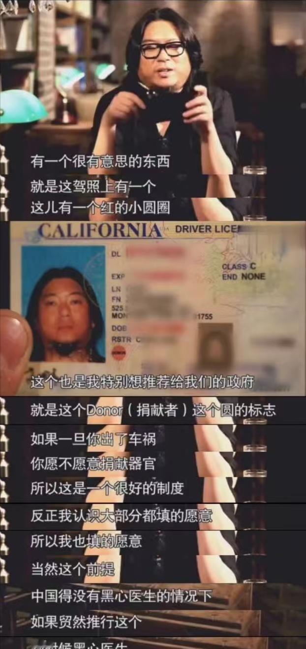 斩杀线一出,“矮大紧”又被大家翻出来鞭尸。多年前,他在一档吹捧美国的节目中,称发现一个很有意思的制度细节想推荐给中国政府:美国驾驶证上有一个自愿捐献器官的标识。就是一旦你出了车祸,相关机构便视你为器官的自愿捐献者,即便父母亲人想收尸都不可能。 高晓松曾在2012年一档节目中介绍美国驾照上的Donor选项,指这是器官捐献标识。申请驾照时需选择是否同意捐献,多数人勾选。他解释这体现了社会责任,意外死亡后器官可救他人。美国驾照统一包含捐献选项,各州数据库连接全国系统。持有人同意后,标识显示在证件上。车祸发生时,警方查证发现标识,即通知器官获取组织。组织评估器官,匹配患者,过程高效。 高晓松称这个制度值得中国借鉴,可加到身份证上,促进捐献率。他指出中国捐献来源有限,等待时间长。节目中他表示对中国推行此制度没信心,因传统重视遗体完整。美国法律规定捐献意愿优先,家属难干预。数据显示,美国每年通过驾照登记获大量器官,移植手术多。部分州视标识为不可撤销授权。 高晓松强调驾照随身携带,便于急救确认。申请时表格明确询问捐献,许多人视之为常态。制度设计减少行政环节,提高效率。全国器官共享网络确保分配公平。高晓松言论反映当时公知观点,推崇西方机制,轻视本土体系。 2026年1月,中国留学生牢A回国,提出“斩杀线”概念,指美国社会将低收入者标价,当成负资产清理。牢A在西雅图兼职处理尸体,见证流浪汉命运。他警告留学生办证时勿勾选捐献,因中国学生器官值钱。 美国媒体报道器官捐献丑闻。肯塔基州一男子脑死亡宣告后手术中苏醒,挣扎三次,官员称反射,继续摘取。卫生部调查显示,351例捐献中28例患者程序启动时可能未死。纽约时报报道捐献激增,但伦理争议大。循环死亡模式下撤设备引发质疑。一母亲发现儿子遗体送展览馆,非火化,因驾照被诱导勾选。 高晓松旧言论被挖出,与丑闻对比,遭网友嘲讽,视为盲目崇美例证。中国器官捐献靠自愿,2015年起停用死囚来源。2024年底登记超6700万,捐献超5.6万例,器官超16.8万。2025年移植手术超2.3万,增长明显。