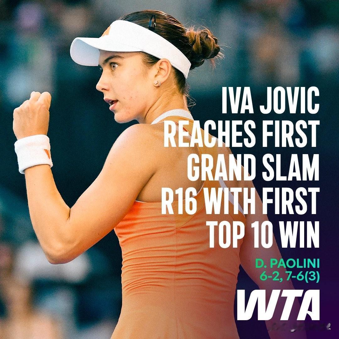 澳网女单今天爆出最大冷门 🇺🇸约维奇6-2/7-6击败7号种子保利尼🇮🇹 生涯首次战胜TOP10, 首次晋级大满贯16强。