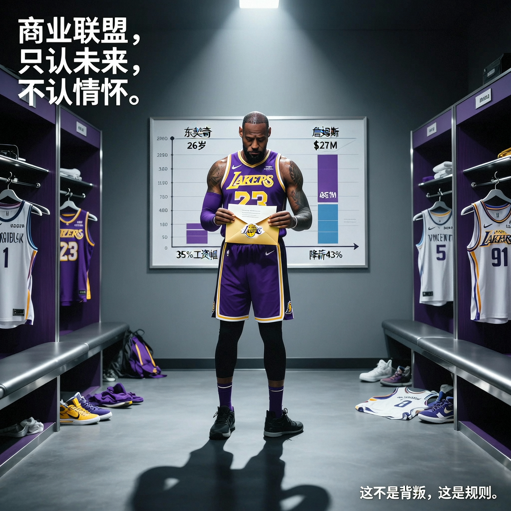 湖人把一年2700万摆到41岁詹姆斯面前,等于直接告诉他:你不再值钱。   ——东契奇26岁拿4300万,占工资帽35%;詹姆斯41岁,降薪43%,连底薪都快保不住。   雷迪克乱排阵容输开拓者,球迷骂声刷屏,我却觉得正常。   商业联盟只认未来,不认情怀。   科勒贝尔、文森特这些名字能进轮换,不是因为多强,而是因为便宜、年轻、听话。   时间到了。   人情在NBA不值钱,合同才说真话。   詹姆斯赌下十年青春,换来一句“感谢贡献”,然后被推上交易货架。   这不是背叛,这是规则。   而你我在职场里,早晚也会收到那封“2700万”的邮件——体面、客气,但冰冷。