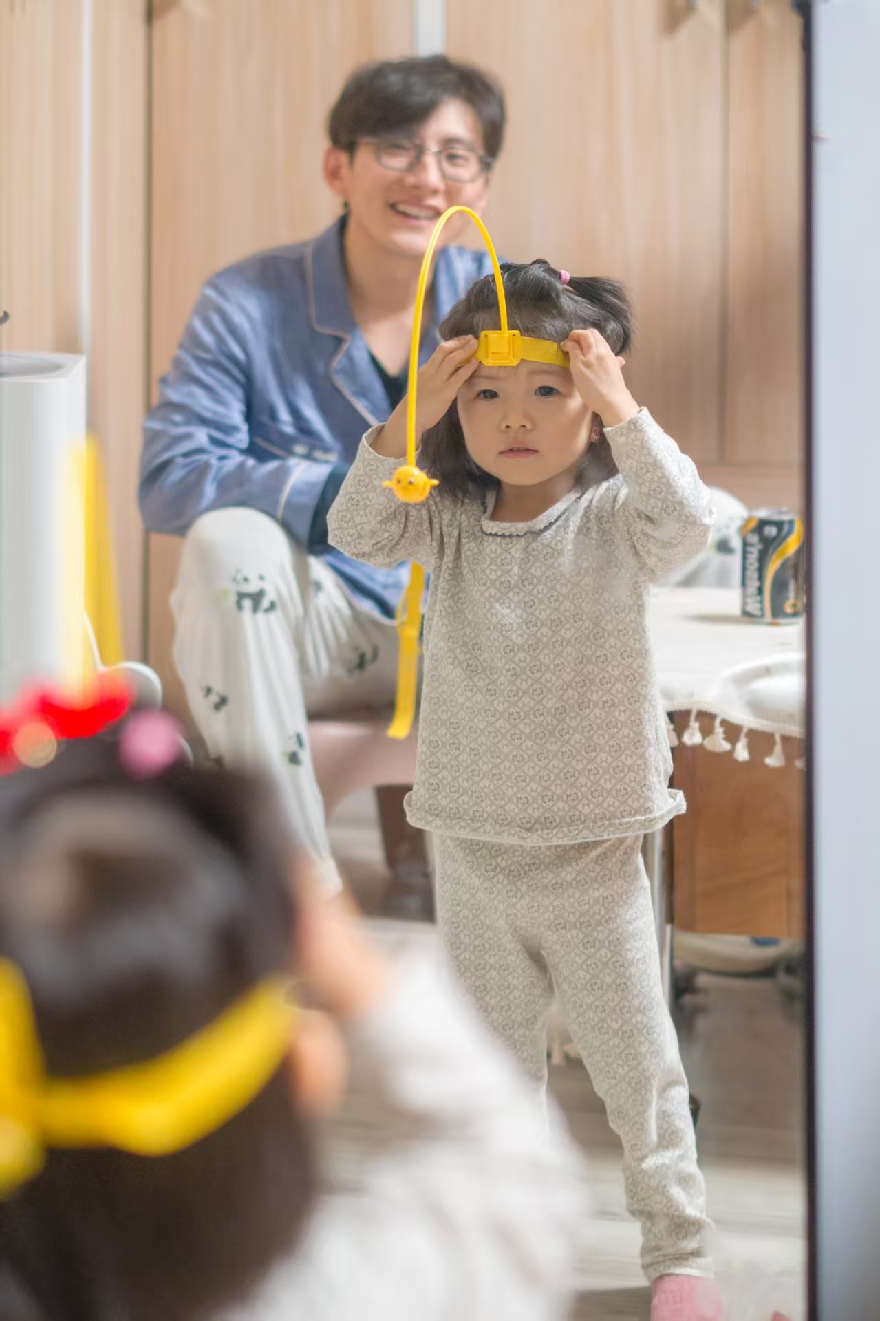 *碎碎念*带了两只小马发夹,让果果二选一。她选了红的,花的给了我。晚上见到她妈。,果果要求看看我的花发夹,拿到手立刻塞到她妈的兜里,说要和妈妈一起戴。我说不行,得拿礼物换,她在玩具山面前犹豫不决,最后挑了一只小小猪给我...姑父给买的小蜜蜂吊豆子...2岁8个月的果果...