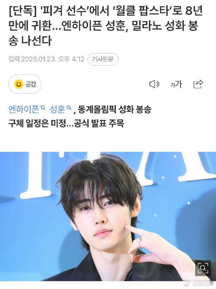 朴成训将参与米兰奥运圣火传递朴成训将担任米兰冬奥会的火炬手,期待啊!朴成训将担