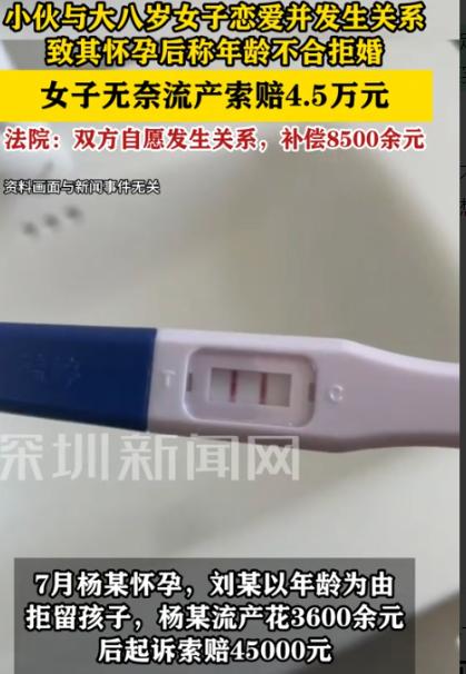 河南一30岁女子与22岁小伙发生关系后,表示想要结婚,但小伙未同意。3个月后,女子发现自己怀孕了,于是再次提起想要结婚,可小伙却以年龄小为由,不同意结婚,还劝说女子去流产。女子把孩子拿掉后,气得将小伙告上法院,要求其赔偿医疗费、精神损失费等共计45000元,可法院的判决让女子十分不满。 信源:深圳新闻网 两人在一次聚会上相识,相差八岁的年纪并没阻碍感情升温。 相处一段时间后,二人独处时发生了亲密关系。杨女士曾提出进一步发展,刘某以没稳定工作为由推脱。 三个月后杨女士意外怀孕,再次提及结婚,刘某却劝她流产,称自己年纪小承担不起责任。 在朋友劝说下,杨女士最终做了流产手术。身心受创的她,决定通过法律途径维权。 她向法院起诉,要求刘某赔偿医疗费、精神损失费等共计4.5万元,可判决结果让她难以接受。 法庭上,杨女士陈述了身体伤痛和心理压力,刘某则辩称自己年轻没经济能力,无恶意伤害。 法官最终判决刘某补偿8700余元,扣除已垫付的200元,实际赔付8500余元。 很多人疑惑,为啥索赔4.5万只支持这么点?其实这里藏着法律常识。 根据《民法典》公平原则,恋爱期间同居怀孕流产,双方均有责任,损失需合理分担。 不像一方存在欺骗、隐瞒婚姻状况等恶意行为,本案中双方是自愿发生关系,无明显过错方。 法院会结合实际损失、双方经济条件酌定补偿,精神损失费因无法定依据通常不支持。 这和之前河南高院公布的类似案例逻辑一致,侧重公平分担,而非单纯追责。 事件曝光后,网友们的看法也两极分化,争议点很真实。 有网友说:“8500元根本弥补不了身体和心理伤害,男方太不负责任了。” 也有网友表示理解法院:“双方都有责任,总不能让没收入的年轻人承担巨额赔偿。” 还有网友提醒:“恋爱再上头也要做好防护,别让冲动付出沉重代价。” 其实这个案子给所有人提了个醒,亲密关系里,责任和防护同等重要。 年龄差距背后的心智成熟度、责任担当,都是需要提前考量的因素。 你觉得这个判决合理吗?面对类似情况,该如何更好地维护自身权益?