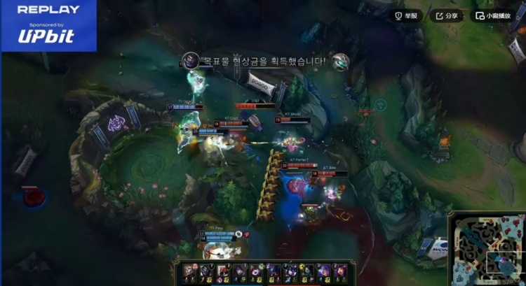 [13:25]野区打红BUFF的Oner蒙多直接吃到猪妹大招被KT中野辅强杀,KT回头拿下二小龙!拉开近2K经济差!