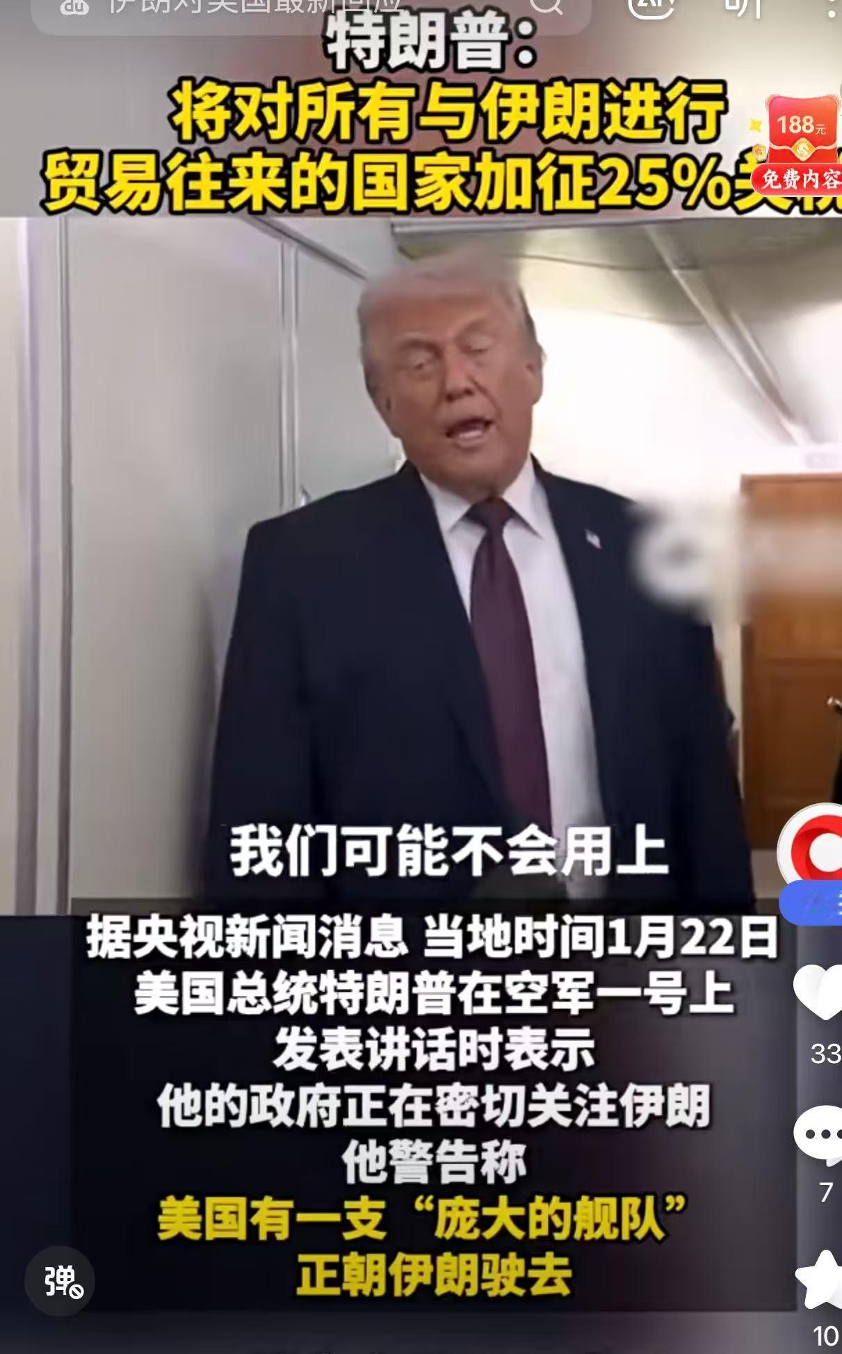 快讯!快讯! 特朗普出兵伊朗! 当地时间1月22日,特朗普从瑞士达沃斯飞回美国,在“空军一号”上说美国正调集重兵往伊朗方向赶,许多舰艇已经在路上了。 这次的动作可不是小打小闹。有公开数据显示,“亚伯拉罕·林肯”号航母打击群已经穿过马六甲海峡,进入印度洋静默状态,预计1月24日就能抵达阿拉伯海靠近伊朗的海域;美国中央司令部还紧急增派了3个F-15E战斗机中队,加上配套的运输机、加油机,光战机数量就超过了40架;另外还有至少6艘宙斯盾驱逐舰和2艘攻击型核潜艇编入特遣舰队,朝着波斯湾开进。 你知道吗?这波操作看着唬人,其实更像是“极限施压”的老套路。特朗普自己也说了“不愿看到任何事情发生”,这话的潜台词很明白:重兵压境是为了让伊朗服软,不是真的想立刻开战。毕竟去年6月以色列突袭伊朗引发的“12日战争”,已经让美国看到了伊朗反击的决心和能力,真打起来,美国在中东的几十个军事基地都得面临导弹威胁。 前车之鉴就在眼前。2025年1月,美国也曾计划对伊朗动武,最后关头却喊了暂停,理由是“伊朗释放善意”,但明眼人都清楚,是当时的兵力部署不足以确保“速战速决”,怕陷入持久战的泥潭。这次特朗普提前把军舰、战机都摆出来,既是为了避免重蹈覆辙,也是为了在谈判桌上拿到更多筹码。 那么问题来了,这波军事集结的账单,到底谁来买单?美国国会去年已经批准了8500亿美元的国防预算,其中中东地区的军事行动专项拨款就有1200亿美元。这些钱,最终还是要分摊到美国纳税人头上,而全球油价也因为波斯湾的紧张局势开始波动,每桶原油价格已经上涨了3.2美元,这意味着咱们普通人开车加油的成本,也可能跟着增加。 美国调派这么多军舰战机去伊朗门口,真的能换来地区和平吗?恐怕未必。伊朗革命卫队总司令已经明确警告,美以不要误判形势,伊朗的准备比以往任何时候都充分。评论区的朋友们,你们觉得特朗普这次是虚张声势,还是真的要动手?欢迎大家在评论区留言讨论!