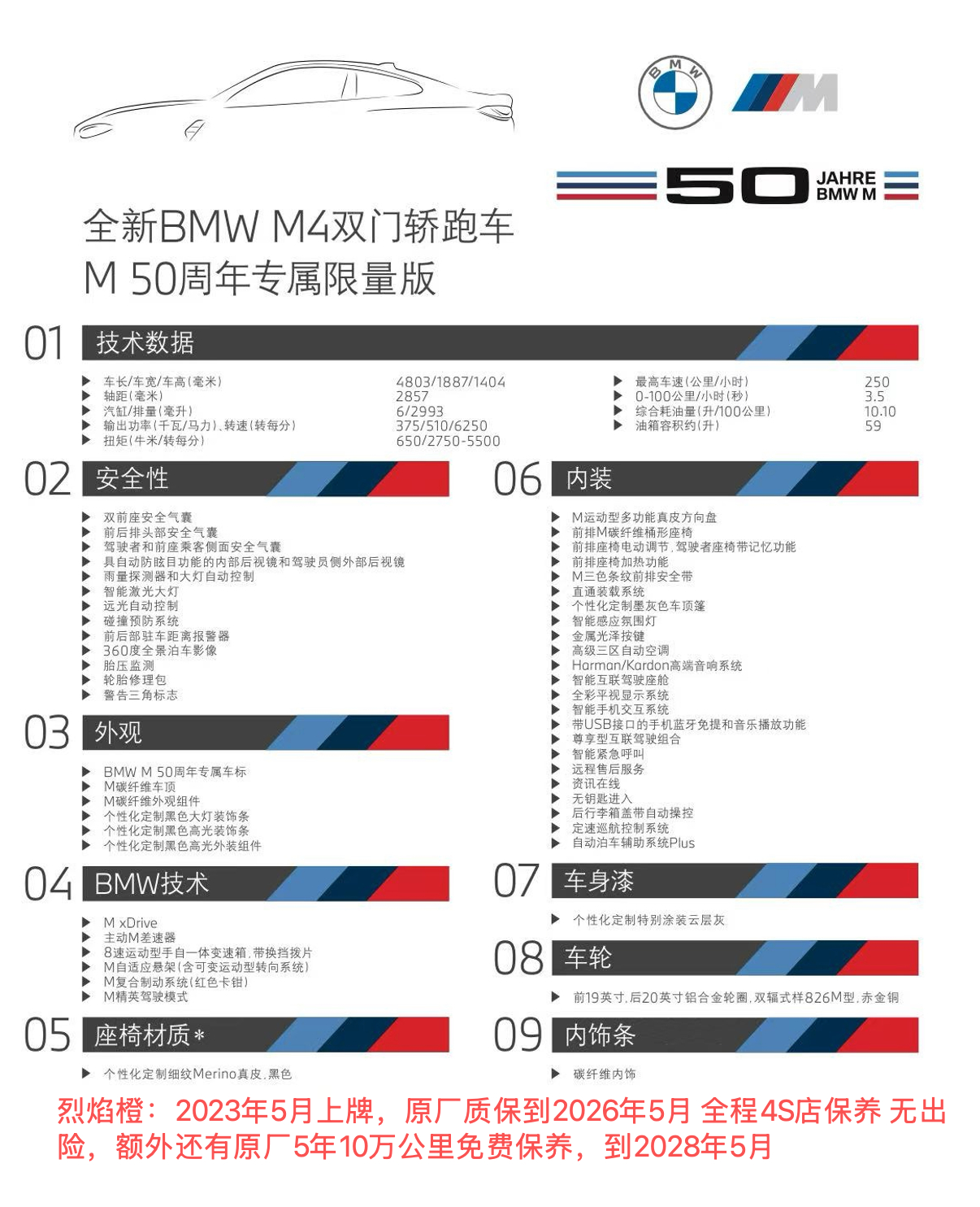 2023 BMW 50周年四驱 M42.3wkm 原漆 【京】 7X不知为何 现在看大鼻孔M4感觉好帅啊