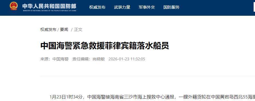 就在刚刚, 中国海警突然发布通报, 1月23日,中国海警发布通报和图片称:凌晨1时34分,中国海警接海南省三沙市海上搜救中心通报,一艘外籍货轮在黄岩岛西北55海里(约101公里)处倾覆,船上共有21名菲律宾籍船员。 事发后,中国海警立即派遣两艘海警舰赴失事海域展开搜救,早上10时52分,已有13人获救,相关救援工作还在持续进行。 大家想想这次这艘菲国货轮,放着自家海域不走,偏偏跑到黄岩岛西北55海里处,这距离说近不近说远不远,刚好在黄岩岛周边敏感区域,普通民用货轮跑这来干什么? 首先得排除“故意挑事”的可能,民用货轮没这必要,也没这能力。最合理的推测有两种,要么是偏离航线,要么是有特殊作业需求。 先说偏离航线,黄岩岛西北海域的海流方向多变,加上凌晨时分视线差,要是货轮导航系统出现轻微故障,或者遇到突发风浪,很容易被海流带偏到敏感区域。 而且据知情信息,这艘货轮是从菲律宾驶往中国广东的,正常航线虽会靠近南海北部,但绝不会深入到黄岩岛周边55海里处,大概率是中途遇到了突发状况,被迫偏离了既定路线。 再说特殊作业的可能,虽然货轮主打运输,但黄岩岛周边丰富的渔业资源,难免让一些人动心思。 会不会是借着运输的名义,偷偷在附近进行非法捕捞或者资源勘探?要知道,黄岩岛潟湖是小型船舶的天然避风港,东南端还有宽三百多米的通道可供通航,确实给非法作业提供了一定便利。 不过这种推测目前没有实锤,毕竟货轮倾覆后,首要任务是救人,后续是否有非法作业行为,还得等救援结束后由相关部门核查。 但有一点可以肯定,黄岩岛周边一直是中方管控的重点区域,任何非法活动都逃不过常态化值守力量的监测。 比起货轮的行踪,更值得关注的是中方的救援态度。可能很多人不知道,这已经是一个月内中方第二次救助菲律宾相关人员了。去年12月25日,中国海军174舰在南海发现一艘滞留三日、物资短缺的菲渔船,立刻送去饮用水和食品,帮渔民脱离了危险。 这样的善举居然被菲律宾有关方面污蔑成“政治宣传”,国防部发言人张晓刚当时就直言,菲方部分人把渔民当炒作工具,既虚伪又冷血。 即便如此,中方这次还是第一时间出动舰船军机救援,这份不计前嫌的人道主义担当,不是嘴上说说就能做到的。 而且这次救援的专业性,也能看出中方在南海的保障能力。参与救援的三门舰可是有“海上保护神”的称号,去年5月还救过韩国遇险渔船的8名船员,后来韩国济州道还授予舰上4名执法员“荣誉道民”称号,成为中韩友好的见证。 这次两艘海警舰能在深夜快速响应,军机同步空中搜索,形成海空立体救援体系,背后是中方在南海长期部署的专业力量和常态化值守机制。 从南沙永暑礁的救助力量驻守,到海空立体应急救援网络的构建,这些年中方一直在用实际行动守护南海的航行安全,截至目前已成功救助近300名遇险人员,获救财产价值超14亿元。 回到最初的疑问,不管这艘菲国货轮是意外偏离航线,还是有其他目的,中方的救援行动已经给出了最明确的答案:在生命面前,所有分歧都可以暂时搁置,人道主义精神永远是第一位的。 黄岩岛周边虽然敏感,但中方始终致力于把南海打造成和平、友谊、合作之海,既坚定维护自身领土主权,也愿意为区域内国家的人员安全提供保障。 目前救援还在持续,剩下的4名船员安危牵动着大家的心,希望后续能有更多好消息。而这次事件也提醒我们,南海的和平稳定需要各方共同维护,与其纠结一艘货轮的行踪,不如多看看中方为区域安全所做的努力。 毕竟在这片广阔的海域上,生命至上、合作共赢,才是最该坚守的准则。相信随着救援的结束,货轮出现的真正原因也会水落石出,而中方用行动诠释的大国担当,早已超越了事件本身的争议。