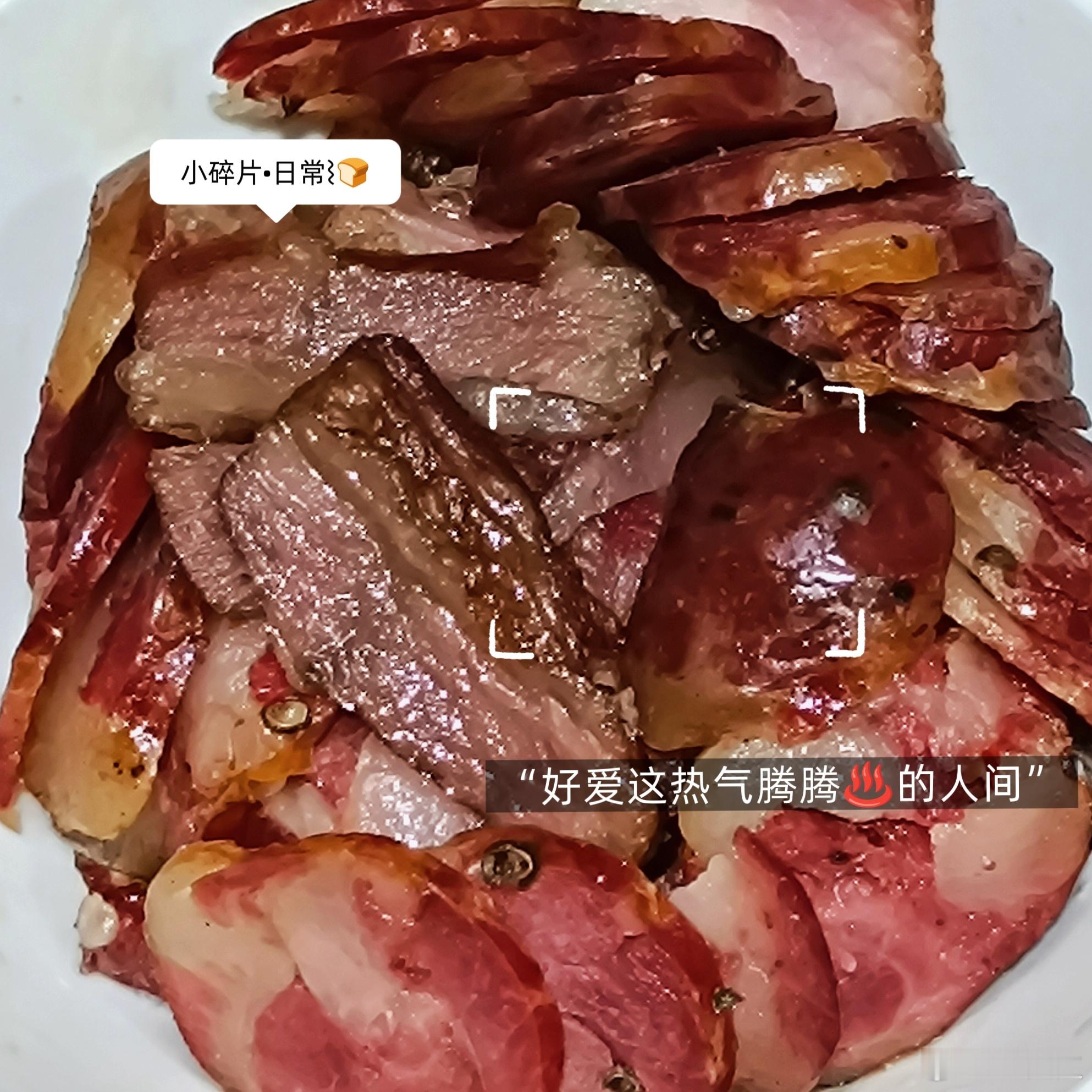 干饭!宝子们晚上吃啥啊?木薯炖奶有点太甜,买土猪肉自酿的香肠腊肉开吃了,巨香