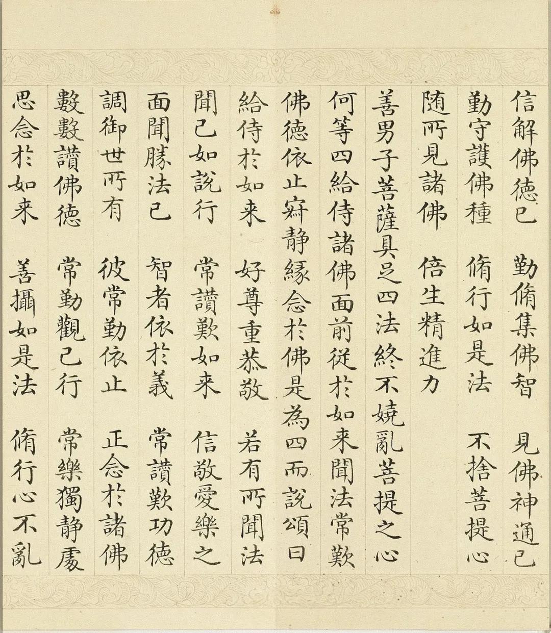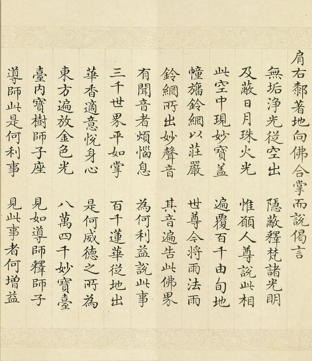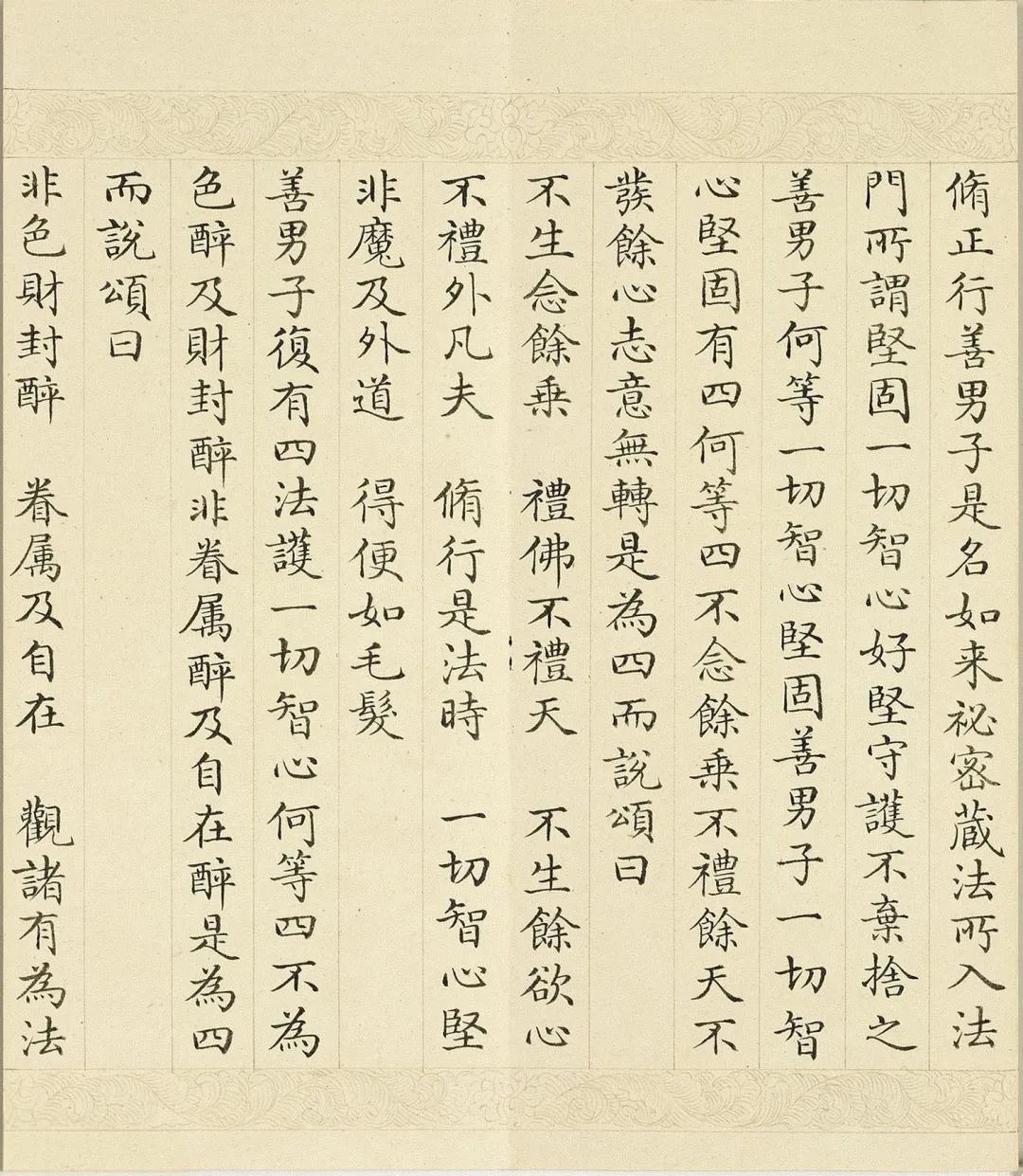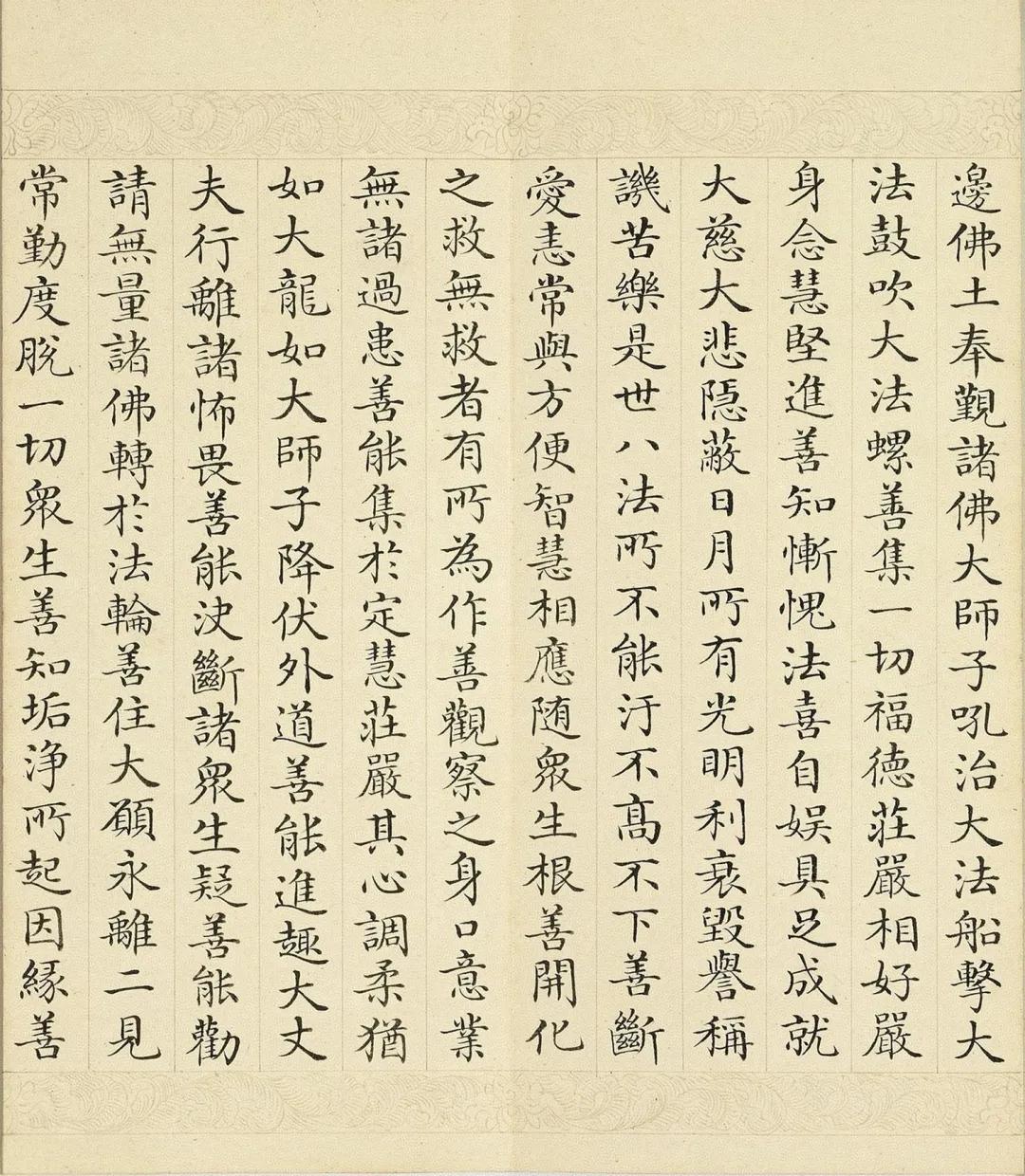 状元于敏中小楷,亮瞎人的眼!书法上没有两把刷子,看来真钦点不了状元!清朝乾隆二年(1737年)状元于敏中,官至文华殿大学士,曾主持《四库全书》编纂,为乾隆朝重臣。其书法师法赵孟頫、董其昌,融馆阁体的端正与文人书的雅韵于一体,风格平和圆润,笔意苍秀,被誉为“逸笔草草,浓润圆熟”。 其楷书代表作小楷《大方广如来秘密藏经》藏于台北故宫博物院。此作结体端庄精严,笔法清劲流畅,墨色浓淡相宜,布白疏朗,既具钟繇、王羲之的古雅遗韵,又兼赵孟頫、董其昌的秀逸之风。于敏中以状元之才、虔诚之心抄写佛经,使笔墨间兼具庙堂气象与禅意空灵,堪称书法艺术与文学、佛法交融的典范,反映了其深厚的学养与澄明的心境。也是我们现代临习的经典范本!