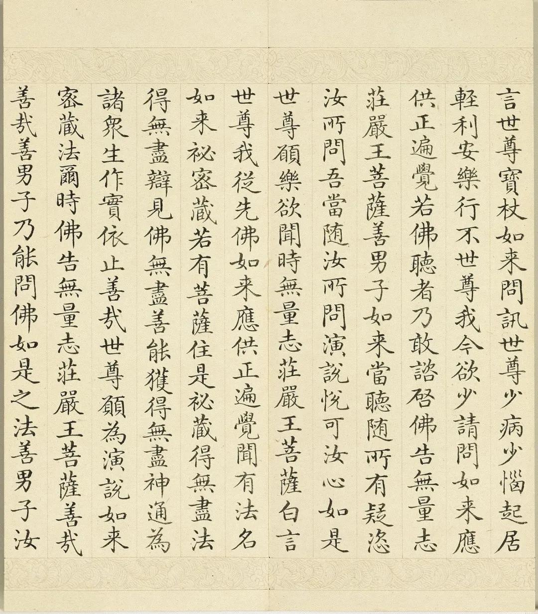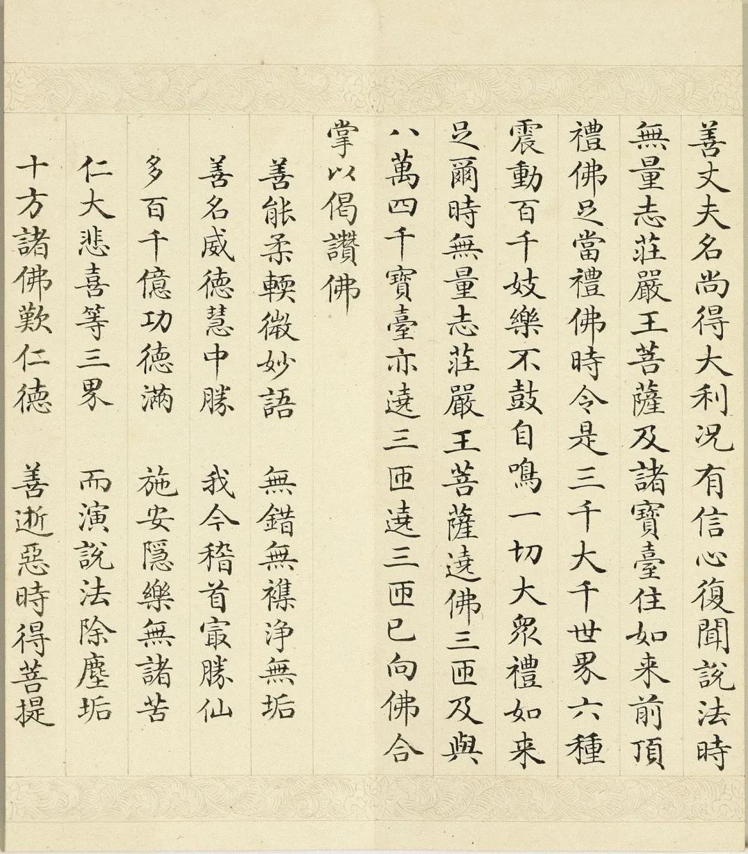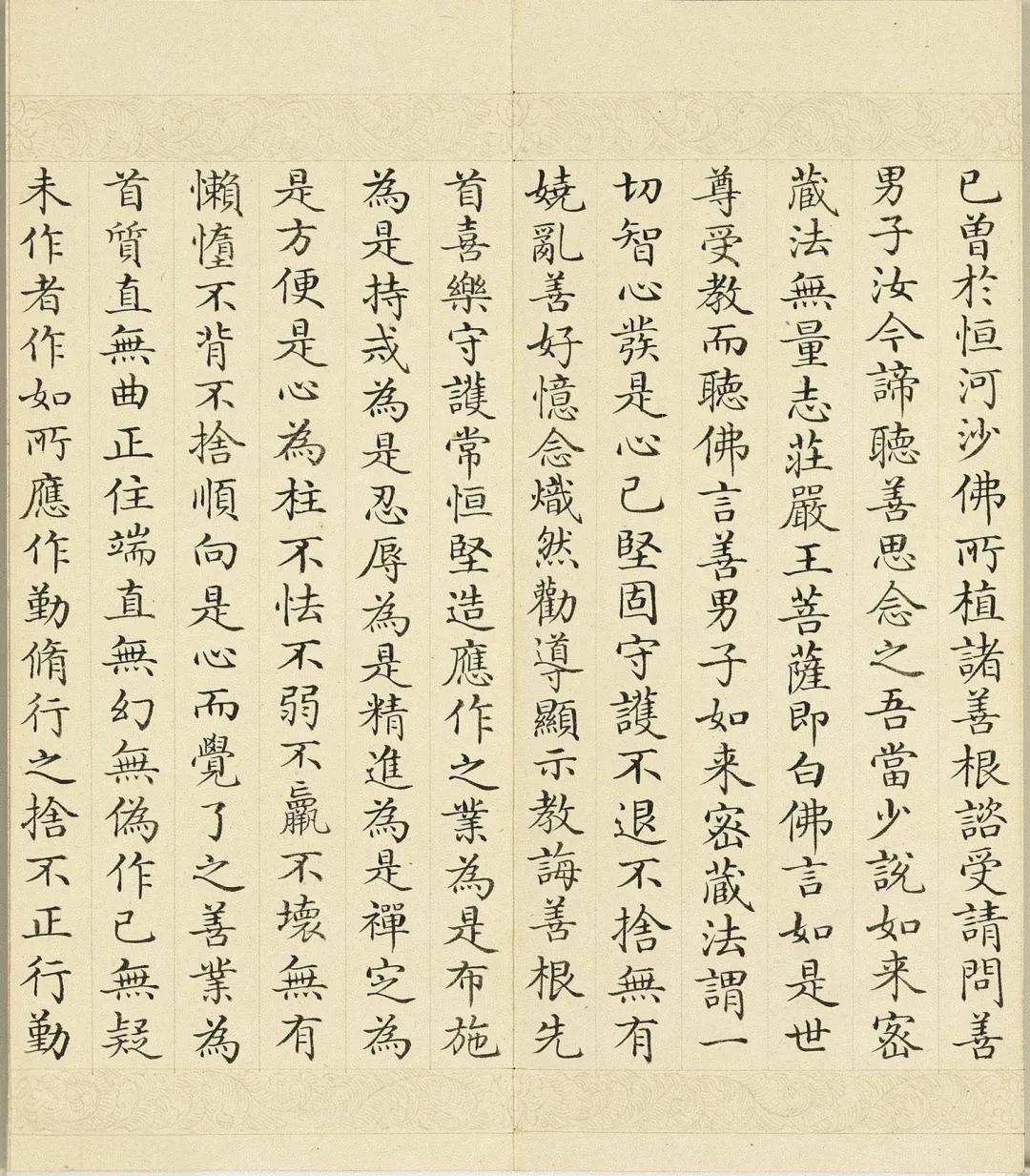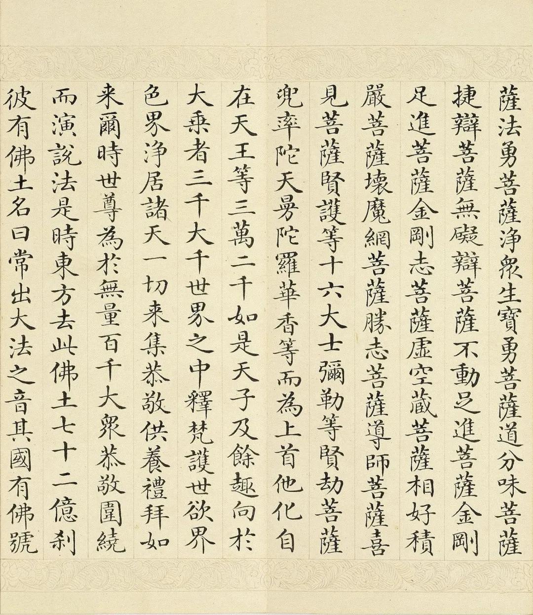 状元于敏中小楷,亮瞎人的眼!书法上没有两把刷子,看来真钦点不了状元!清朝乾隆二年(1737年)状元于敏中,官至文华殿大学士,曾主持《四库全书》编纂,为乾隆朝重臣。其书法师法赵孟頫、董其昌,融馆阁体的端正与文人书的雅韵于一体,风格平和圆润,笔意苍秀,被誉为“逸笔草草,浓润圆熟”。 其楷书代表作小楷《大方广如来秘密藏经》藏于台北故宫博物院。此作结体端庄精严,笔法清劲流畅,墨色浓淡相宜,布白疏朗,既具钟繇、王羲之的古雅遗韵,又兼赵孟頫、董其昌的秀逸之风。于敏中以状元之才、虔诚之心抄写佛经,使笔墨间兼具庙堂气象与禅意空灵,堪称书法艺术与文学、佛法交融的典范,反映了其深厚的学养与澄明的心境。也是我们现代临习的经典范本!