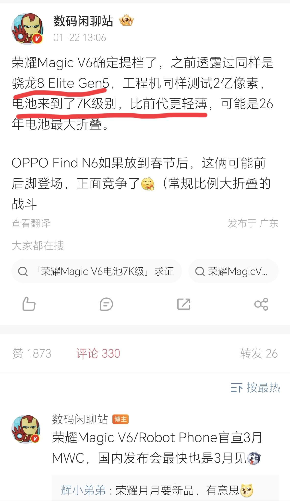 好家伙!荣耀堆大电池是不亦乐乎?连折叠屏Magic V6都要突破7000mAh大电池了,而且还能做到更轻薄,这下友商真得傻眼了吧,不带这么玩的[捂脸]