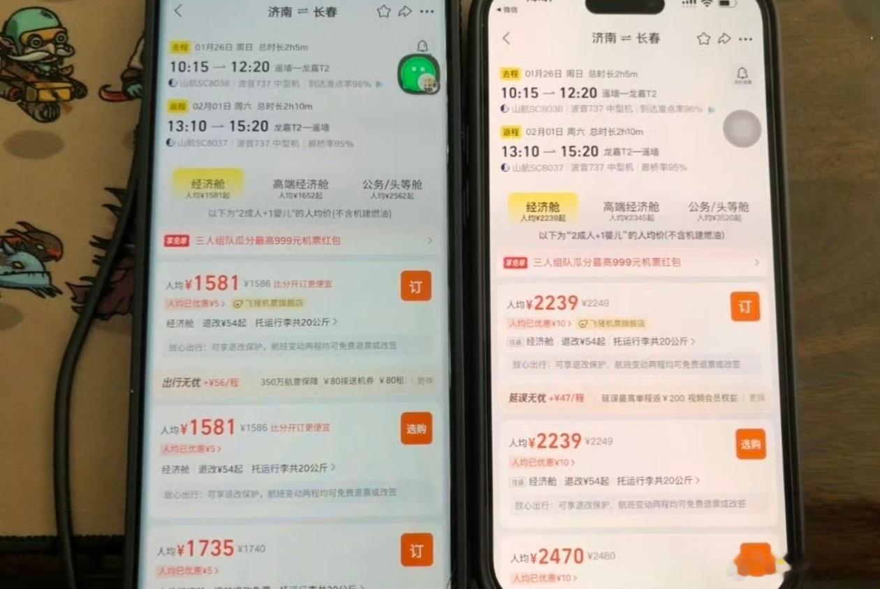 苹果用户的天塌了苹果和安卓的机票和酒店价格竟然不一样,博主之前只知道苹果在打车上贵一点,今天刷到了网友晒出的机票差价属实是吓到我了,这个机票的价格差的也有点太多了吧,博主只能为苹果用户捏一把汗,不知道这么多年多付了多少钱