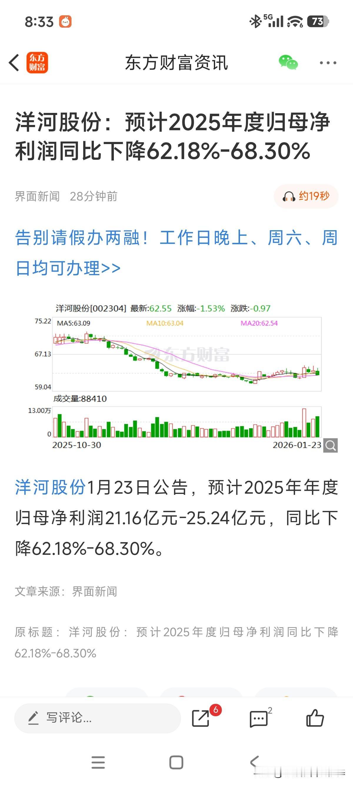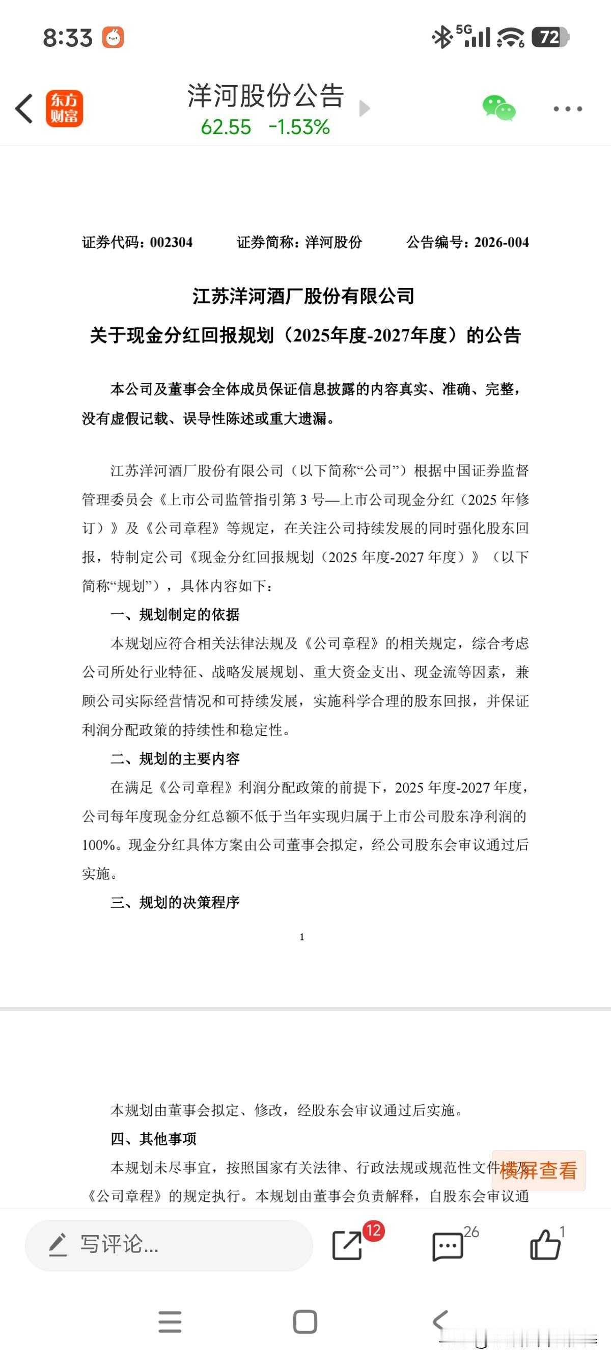 业绩预告来了,业绩同比下滑62%以上市场能预测得出来!狠的是之前承诺的年保底70亿以上的分红直接不认账了! 账面类现金还有近200亿,25年只是业绩下滑,又没有亏损!又不是没能力履行原公告!换新班子上马!重新开一桌[捂脸]!