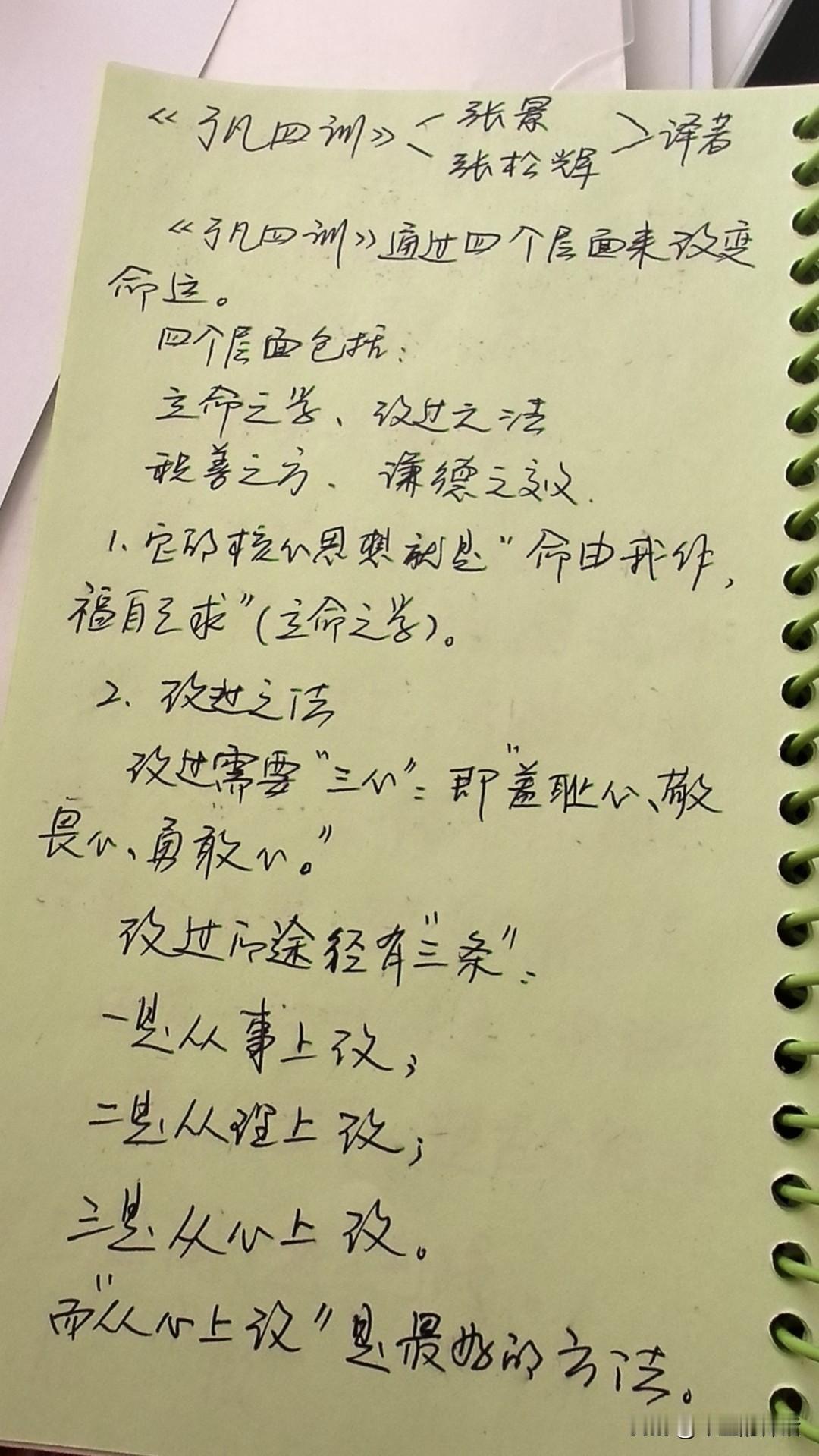 《了凡四训》读经典 这部书实质是写给公考举仕求功名的激励的书。因《立命之学》是作者袁黄,号“了凡”与他69岁时撰写训导儿子的,所以,又被称为家风家训的古典籍。 《了凡四训》讲了从四个层面来改变命运: 立命之学-改过之法-积善之方-谦德之效 改过的途径有三条: 一从事上改;二从理上改;三从心上改。 《了凡四训》最经典的一句话是“命由我作,福自己求”。值得一读! 书香了凡四训