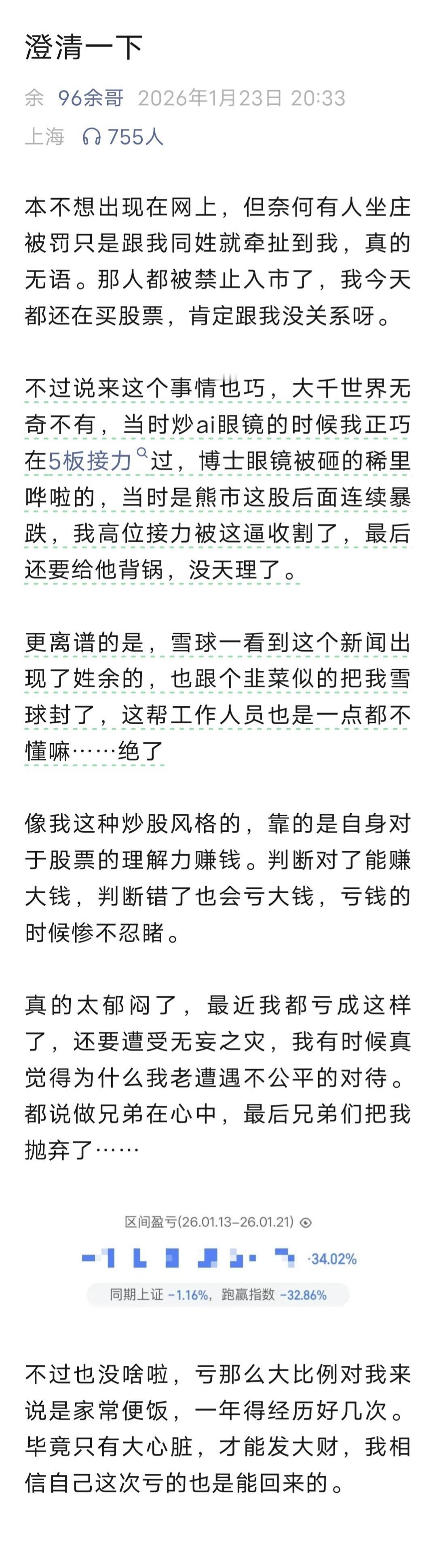 余哥发文澄清: