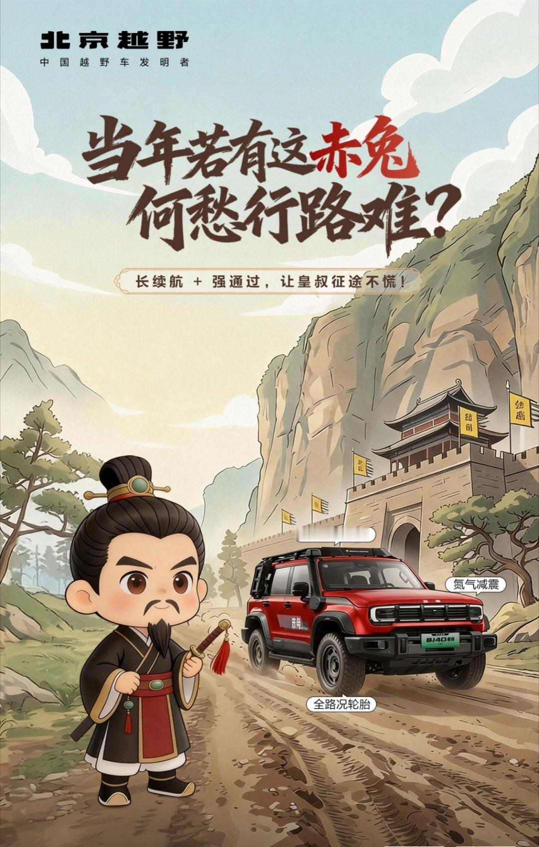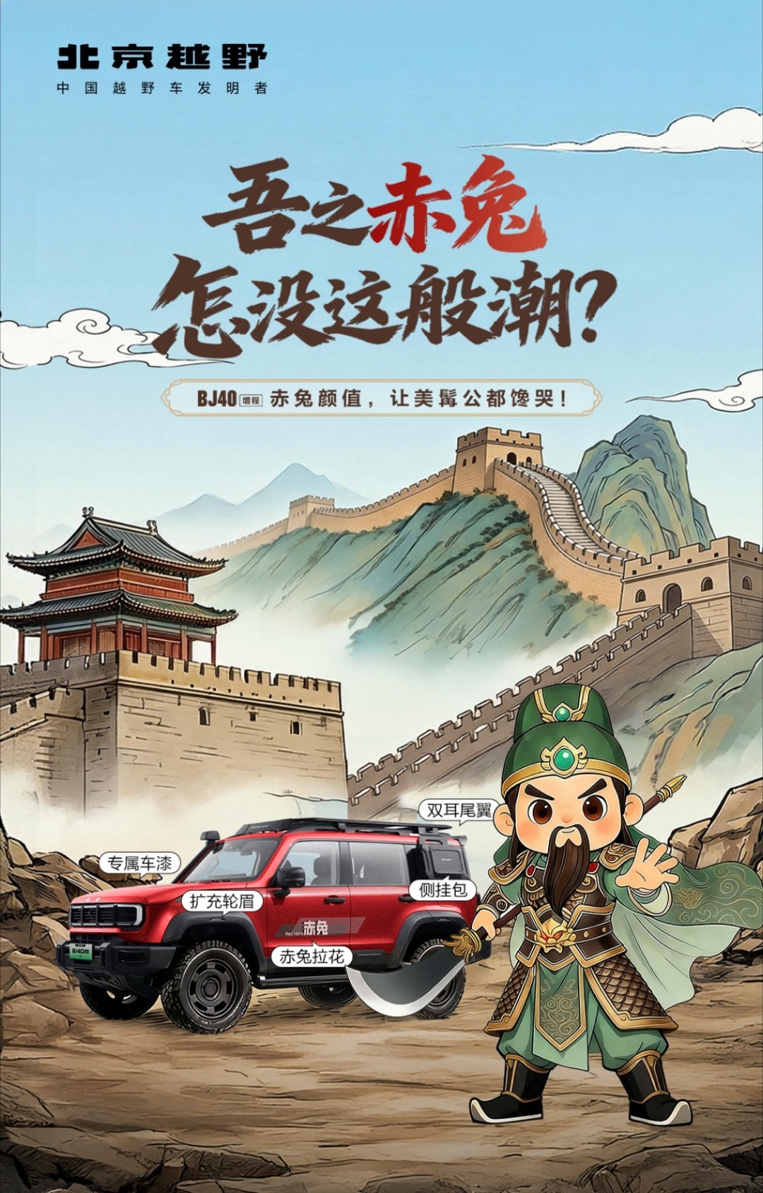 AI真会玩儿,哈哈。赤兔点兵三国名将刘关张,续航让刘备动容,颜值让关公眼红,防护让张飞安心BJ40增程赤兔版 1月27日上市暨交付