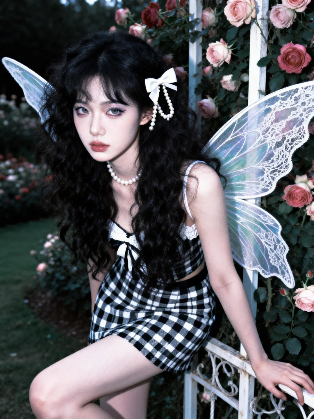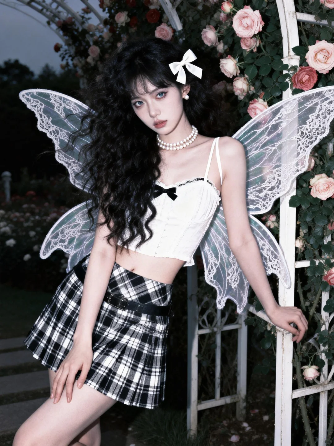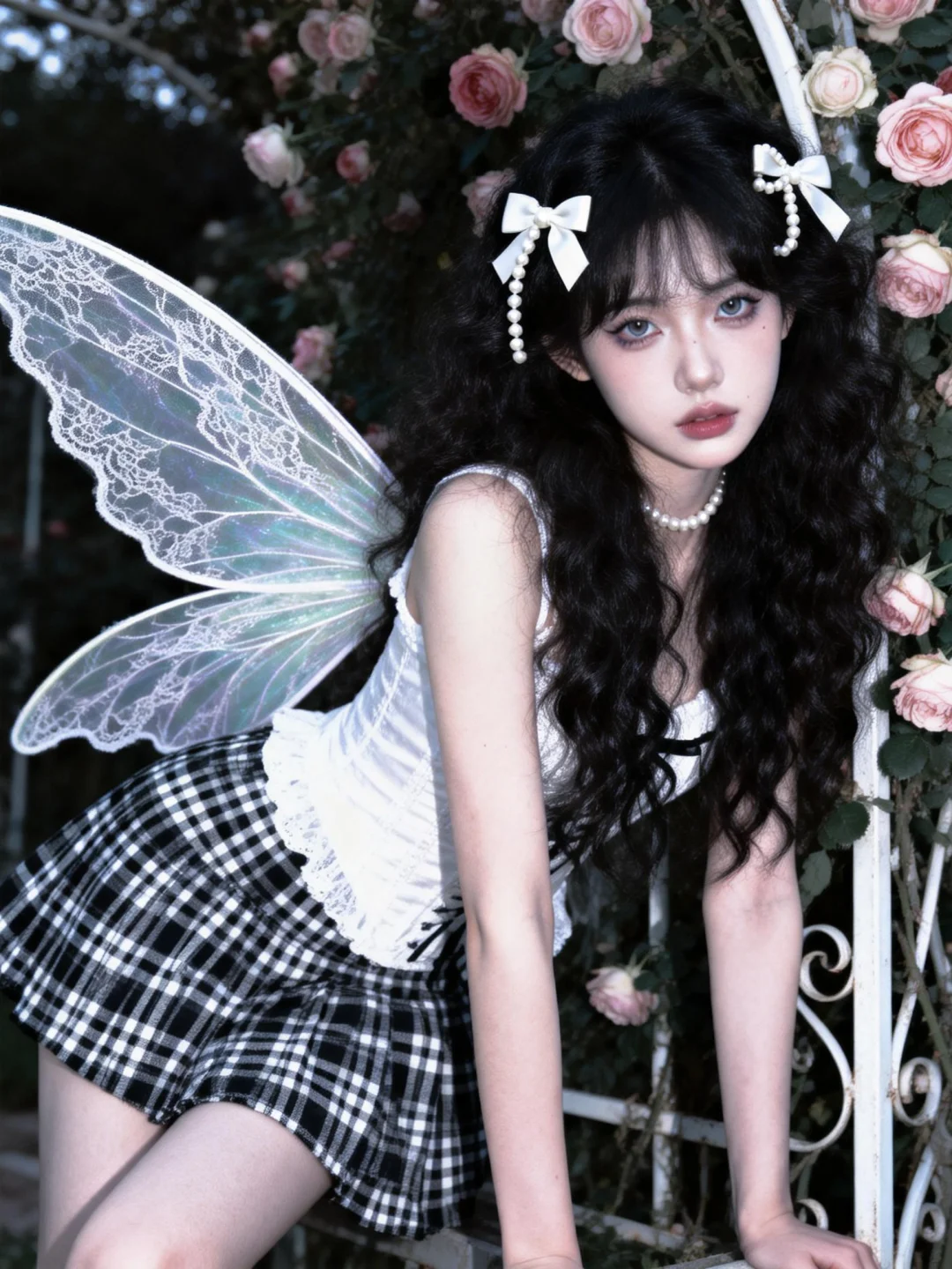 🔹【道具加分】透明蕾丝翅膀 + 白色蝴蝶结发夹,搭配珍珠项链增加精致度,简单几件小单品就能快速营造精灵感,不用复杂布置也能出片。