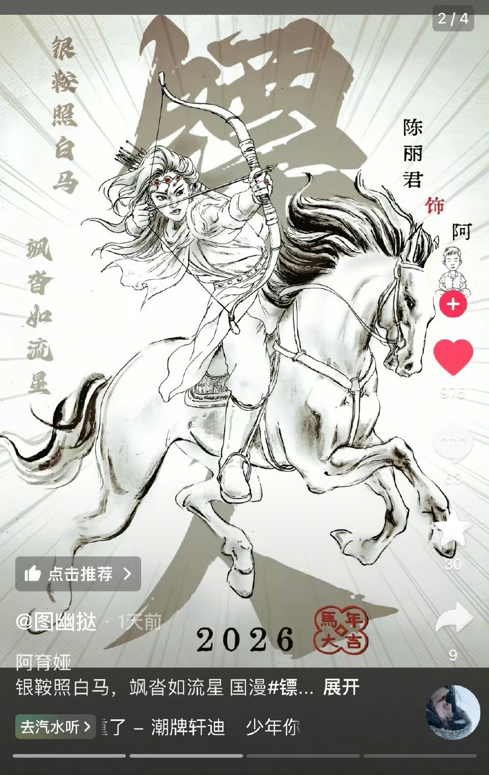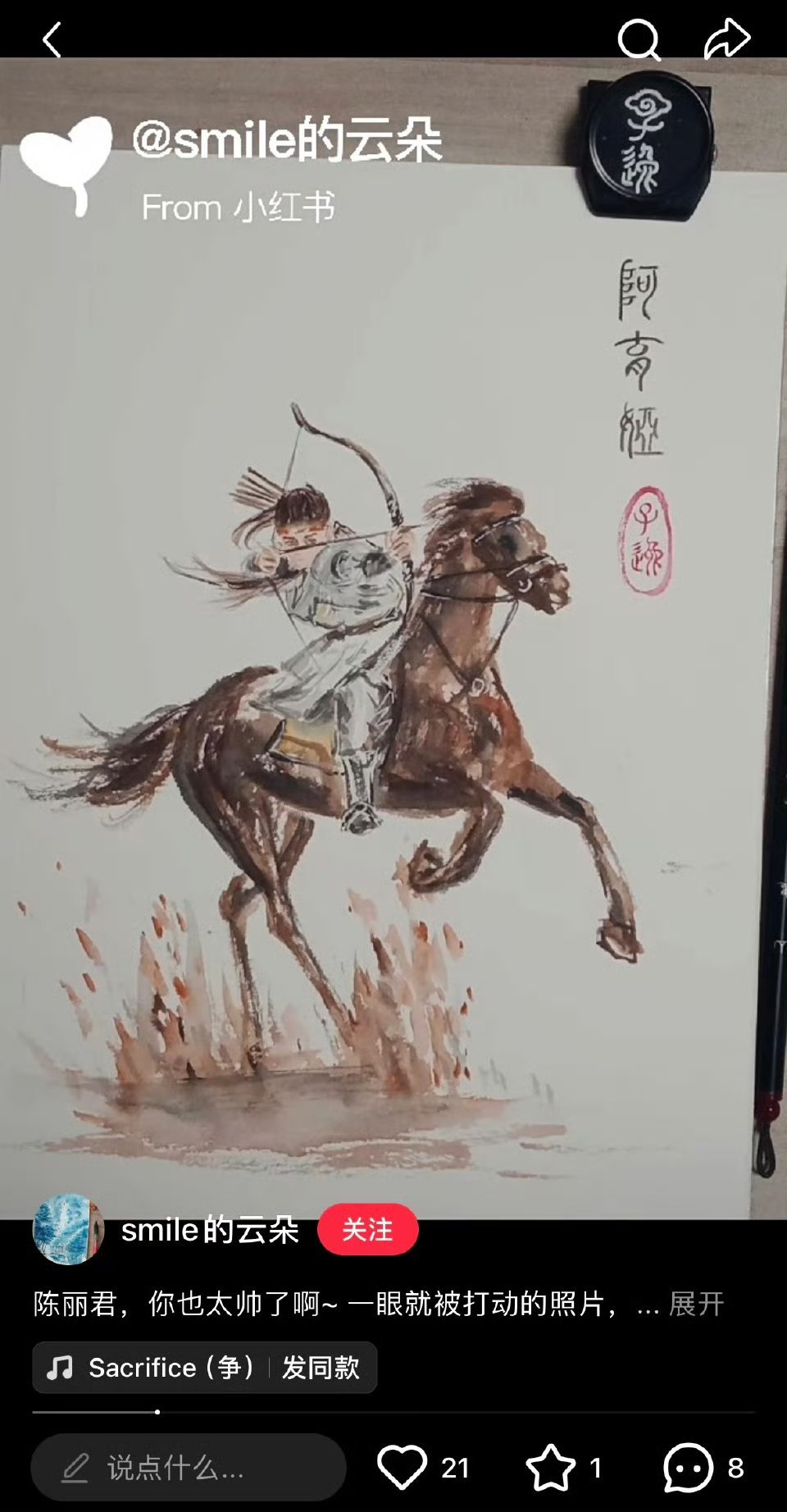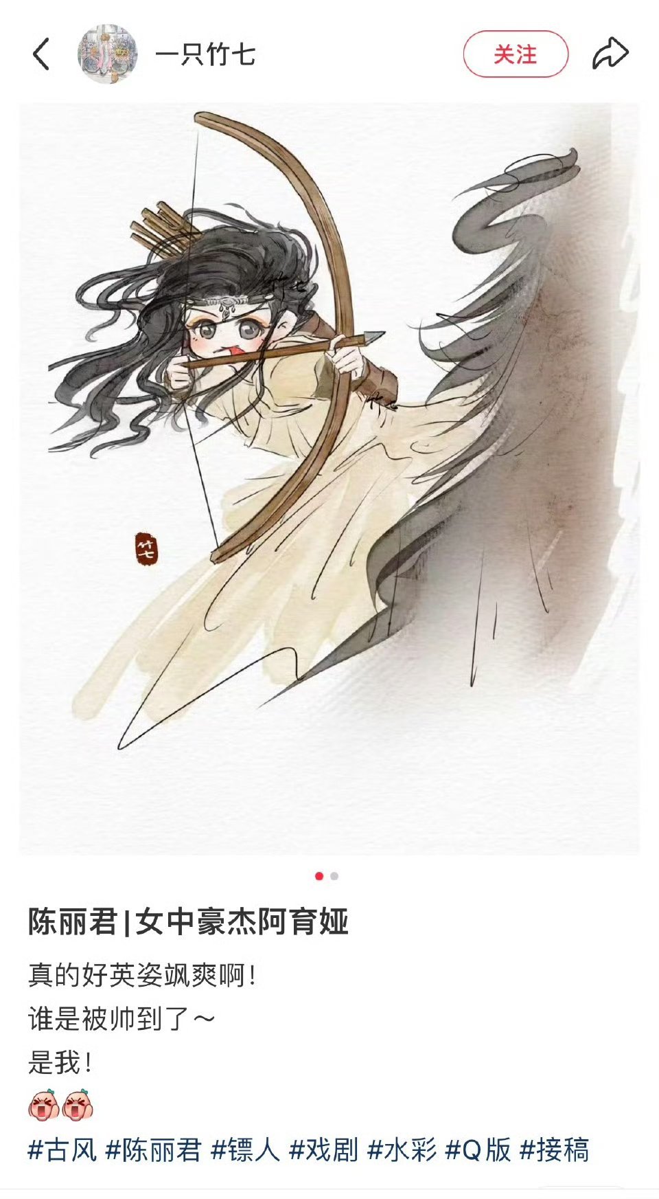 陈丽君镖人骑马射箭镜头好出圈,已经有这么多画手画上了