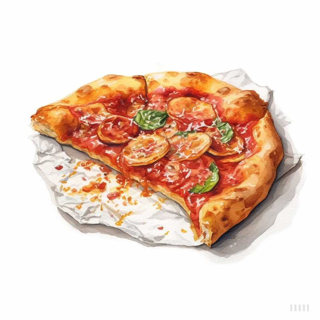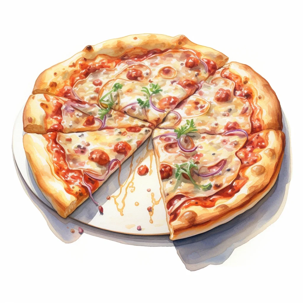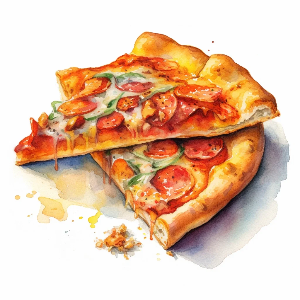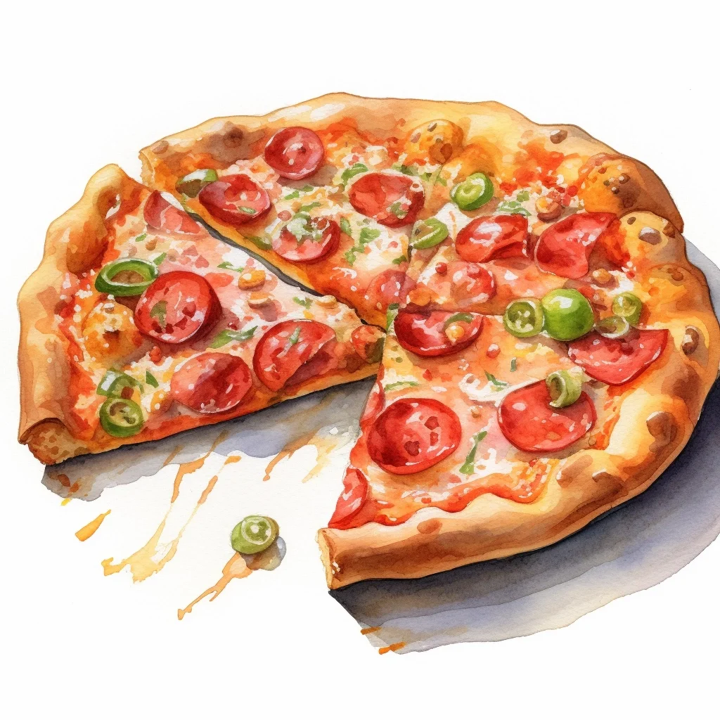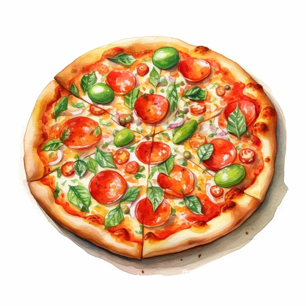 水彩美食 披萨 食物 水彩 midjourney AI插画 Ai绘画