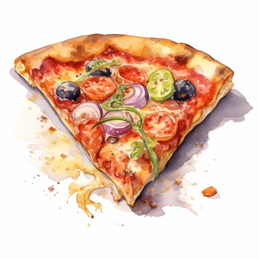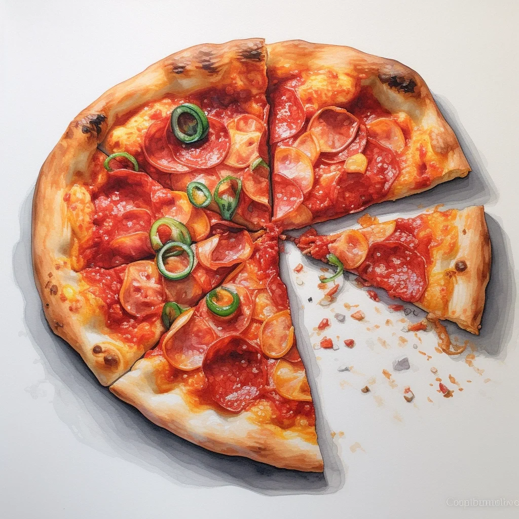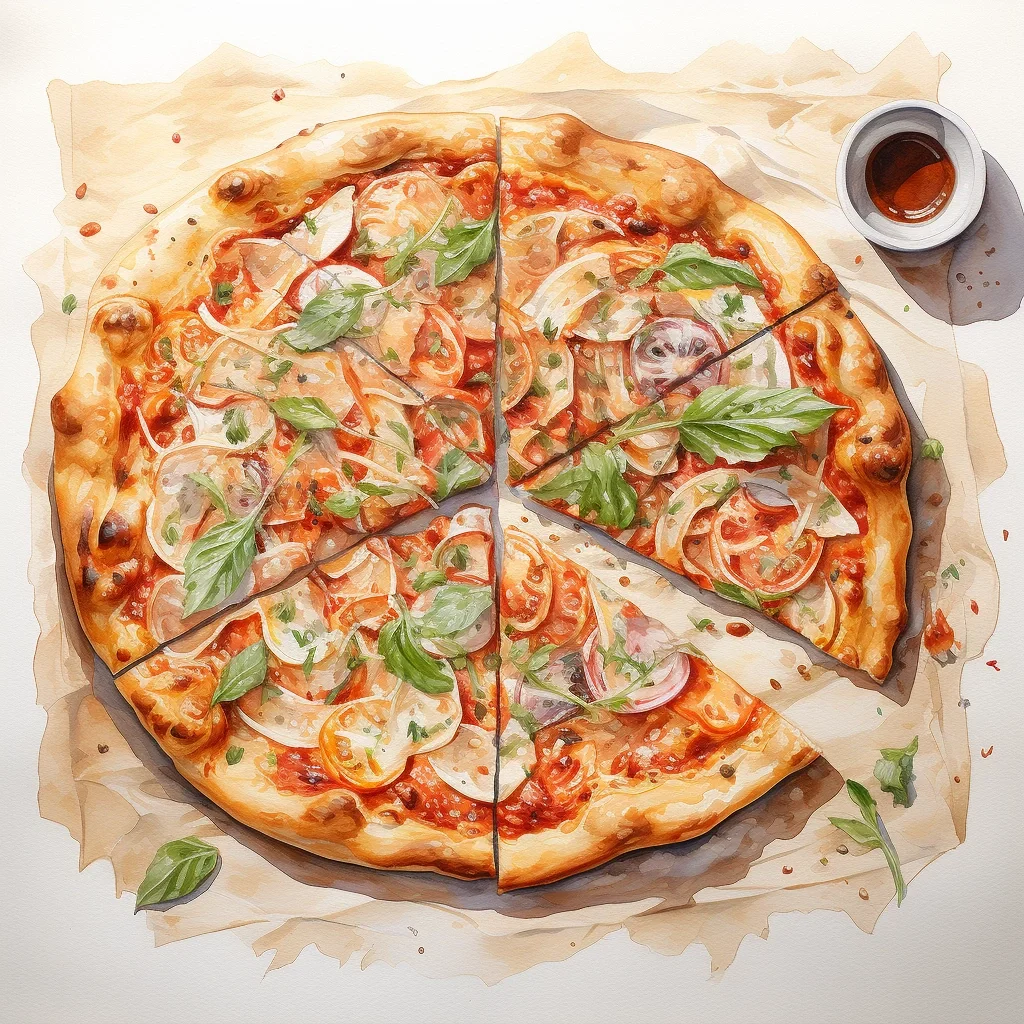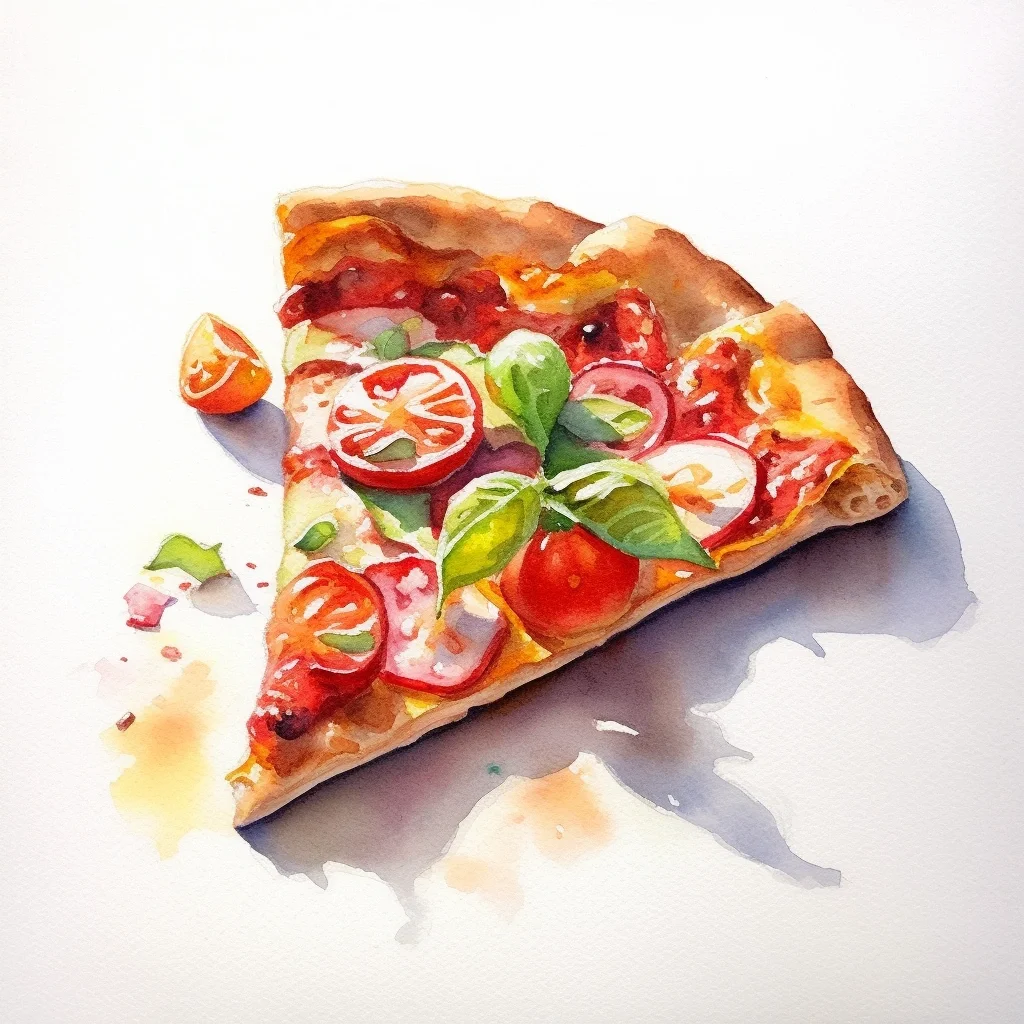 水彩美食 披萨 食物 水彩 midjourney AI插画 Ai绘画