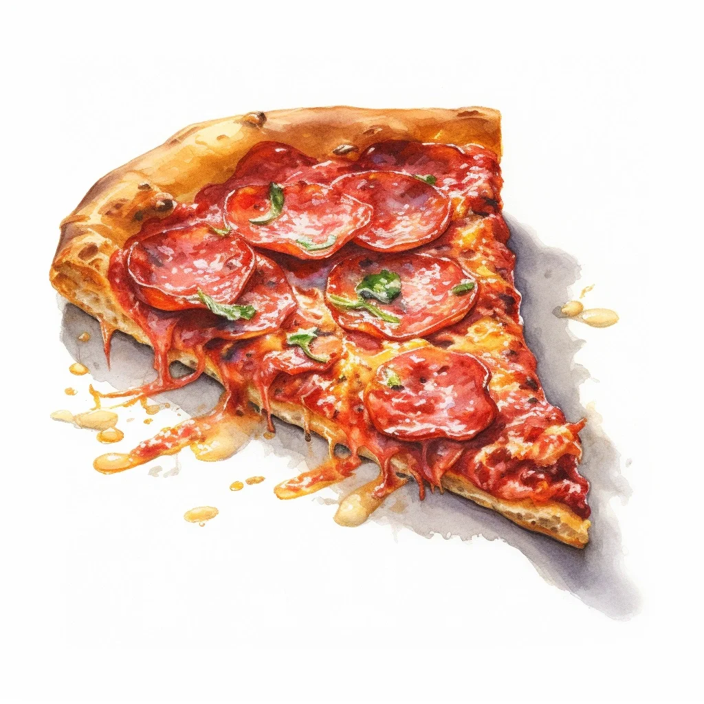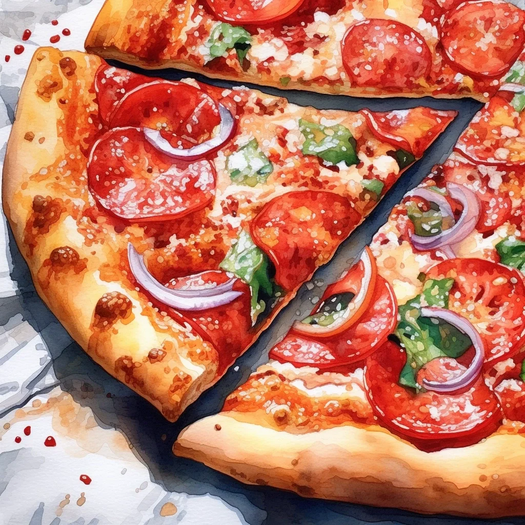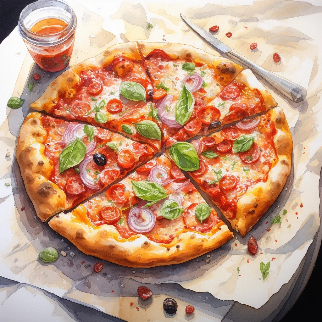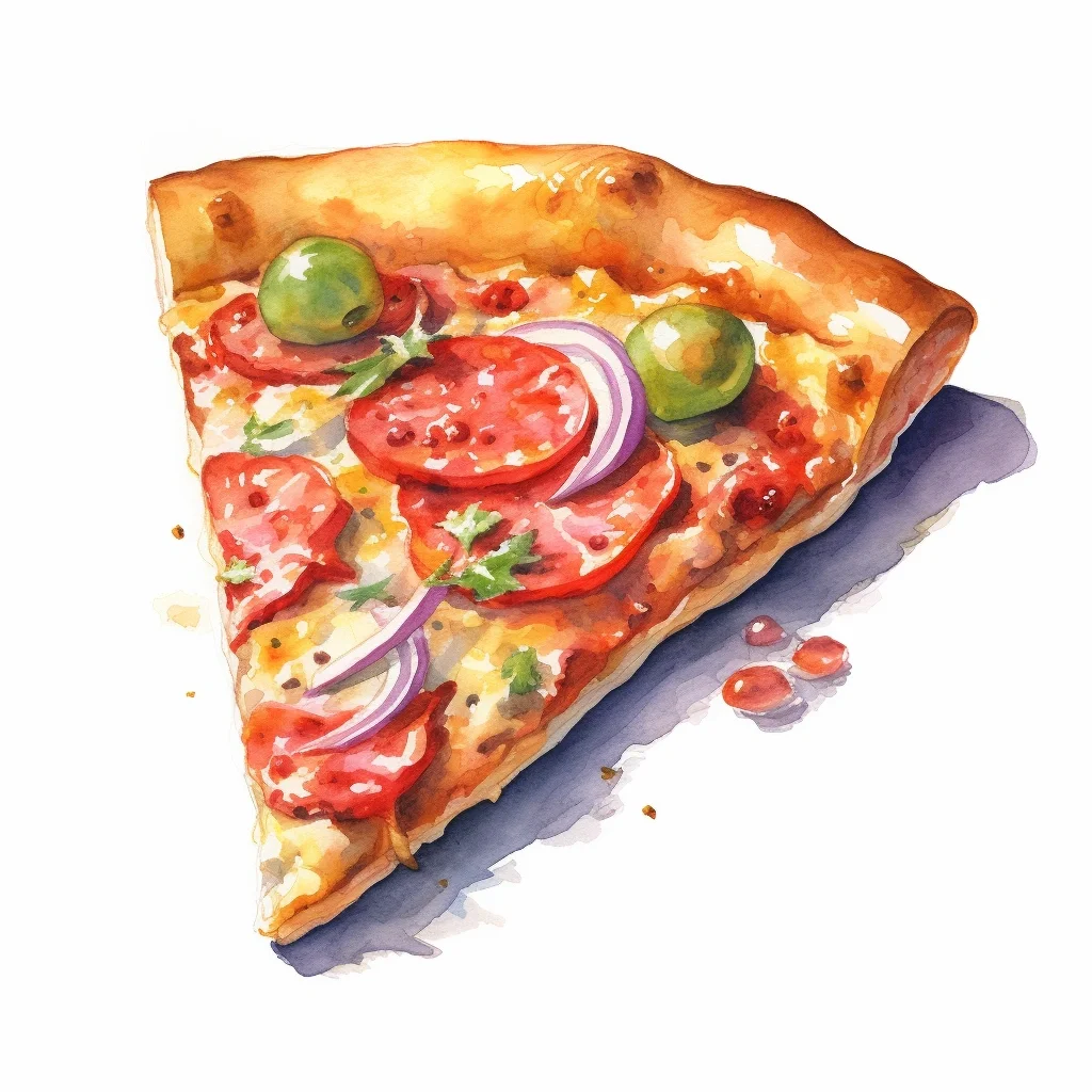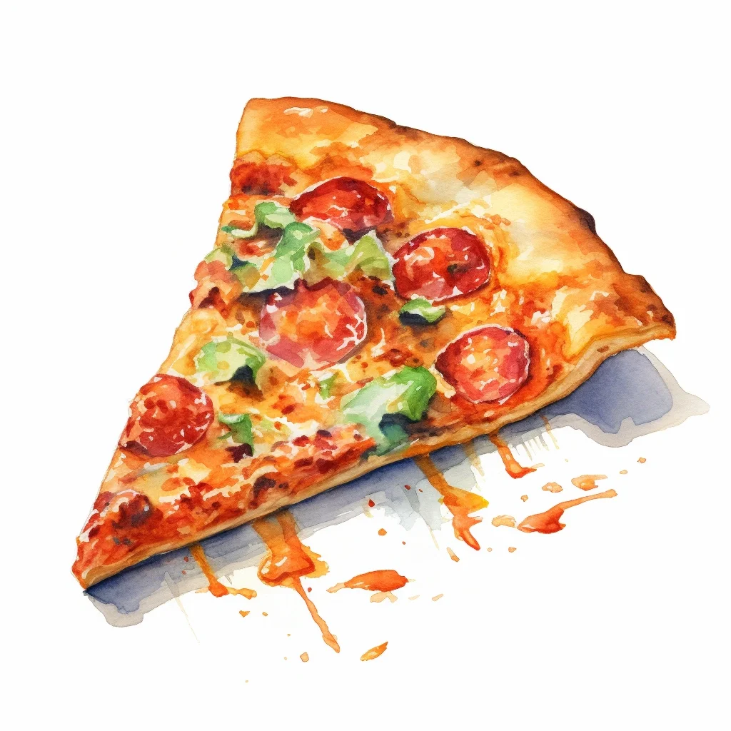 水彩美食 披萨 食物 水彩 midjourney AI插画 Ai绘画