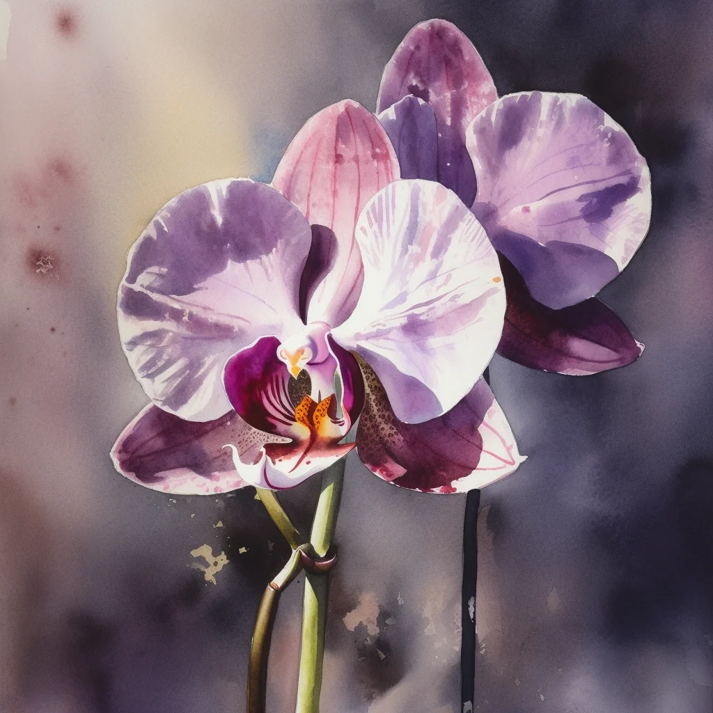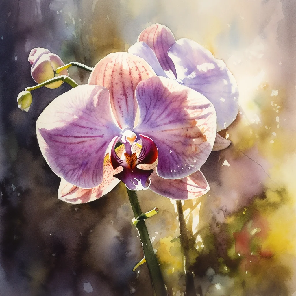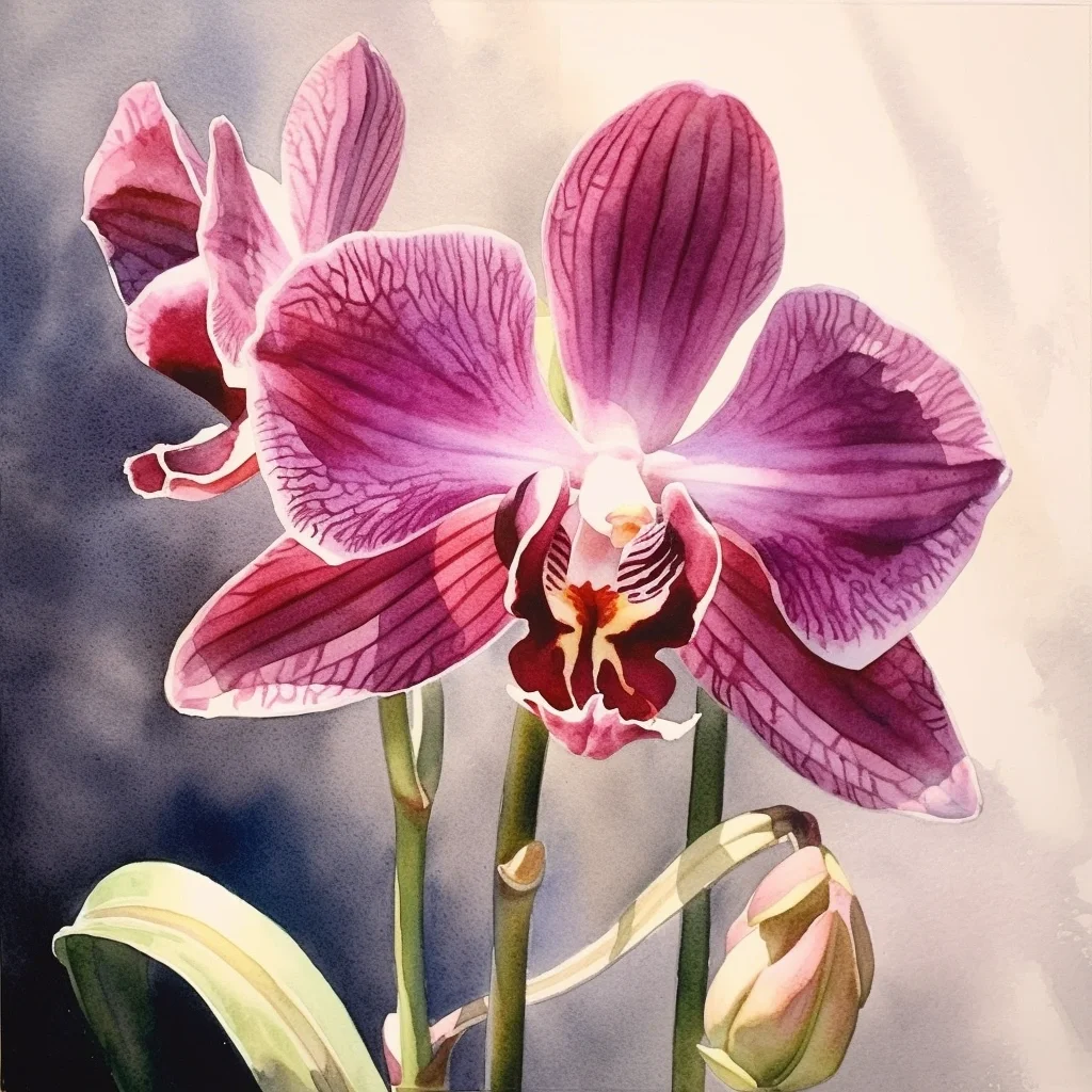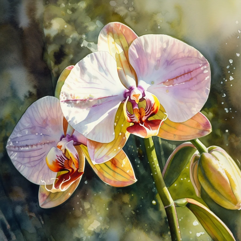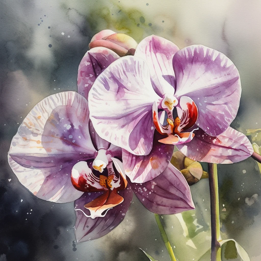 蝴蝶兰 兰花 水彩 midjourney Ai绘画 水彩花卉 花卉 花