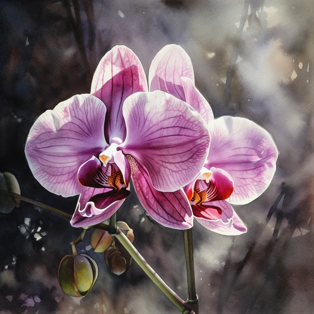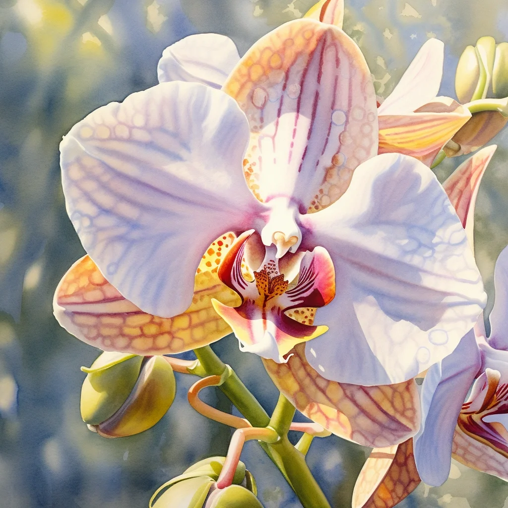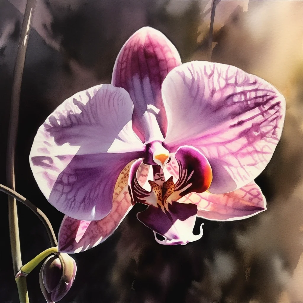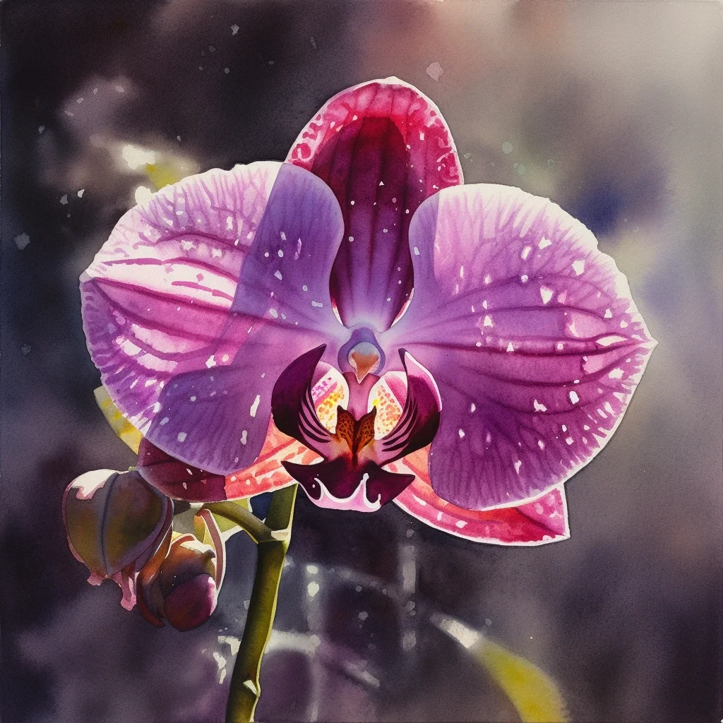 蝴蝶兰 兰花 水彩 midjourney Ai绘画 水彩花卉 花卉 花