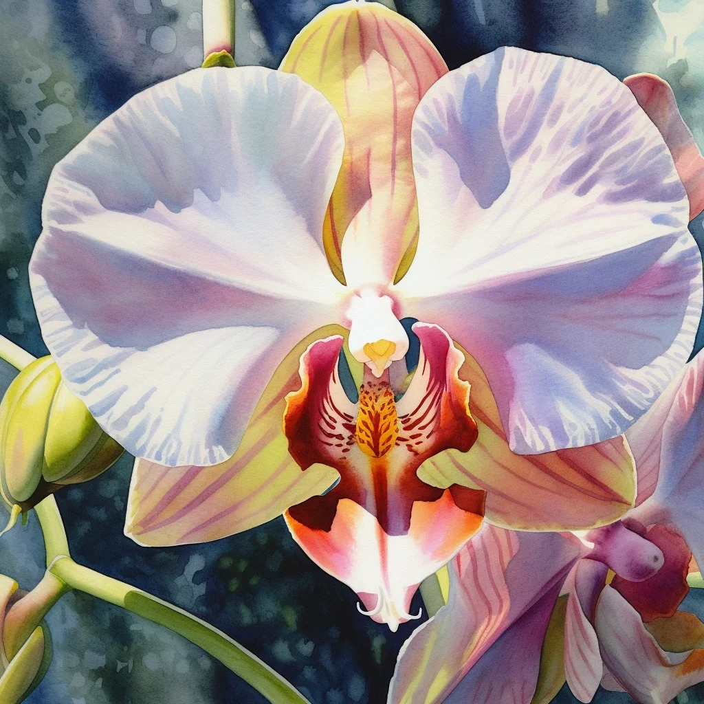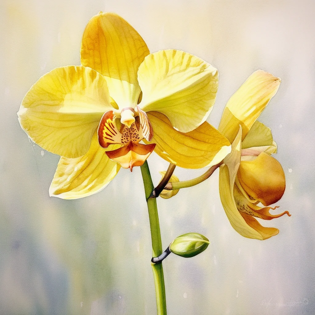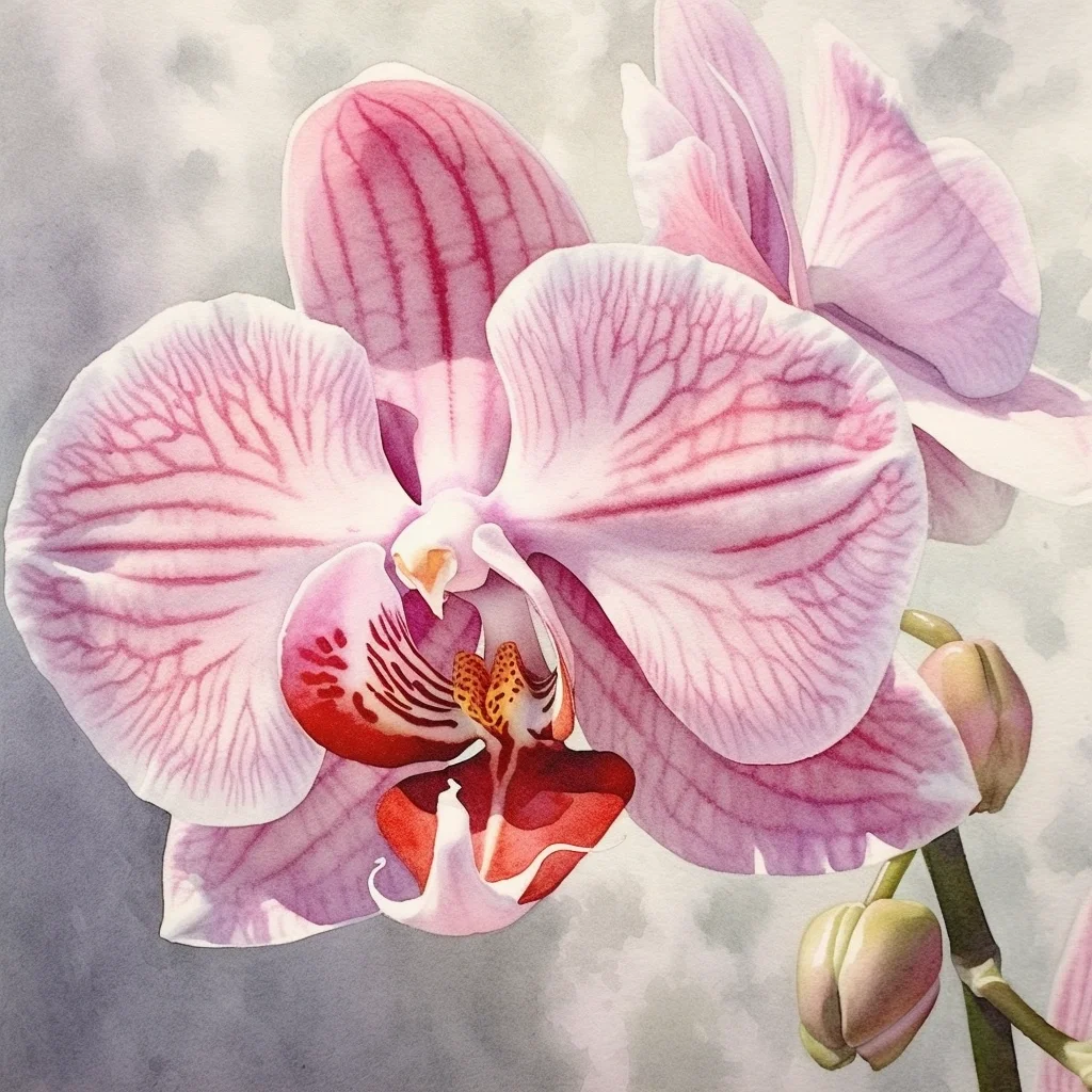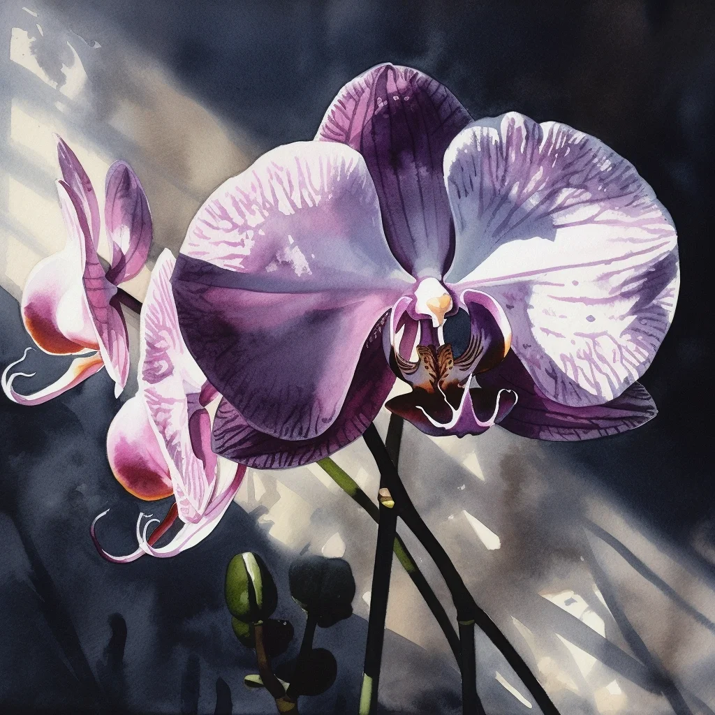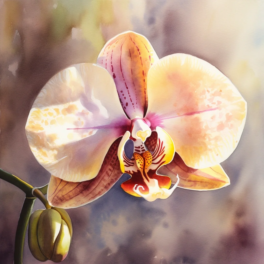 蝴蝶兰 兰花 水彩 midjourney Ai绘画 水彩花卉 花卉 花