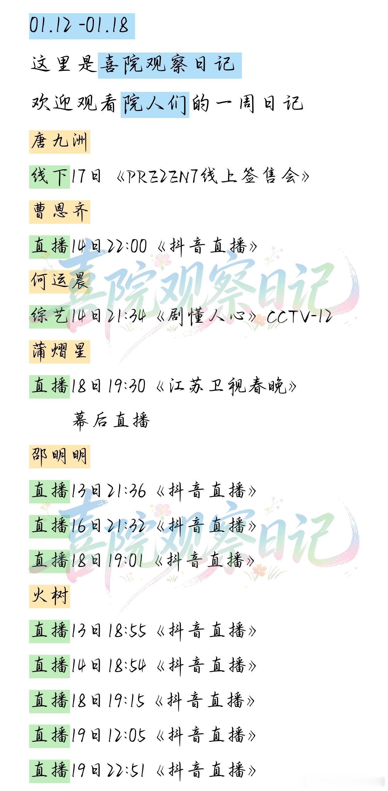 院人上周行程汇总!11.0欢迎观看院人2026年第三周行程全梳理,从节目播放到公开亮相,每一个瞬间都藏着惊喜,快码住这份超全汇总~院人‖