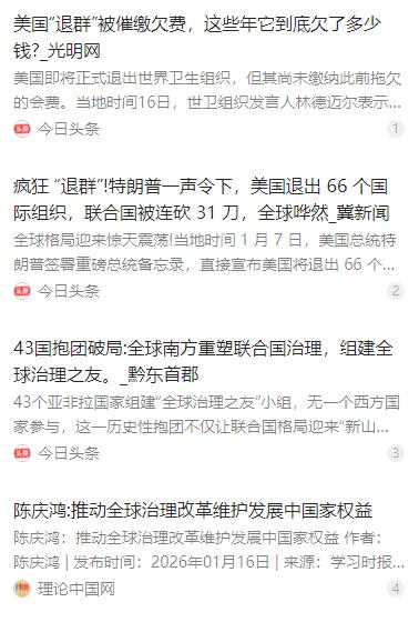 联合国这回算是热闹了,一夜之间冒出来个“新山头”。   麻烦看官老爷们右上角点击一下“关注”,既方便您进行讨论和分享,又能给您带来不一样的参与感,感谢您的支持!   2026 年初的联合国,彻底打破了以往的沉闷格局。一场号称 “瘦身增效” 的改革方案,让这个全球最大的多边组织陷入舆论漩涡,而一个由 43 国组成的 “新山头” 横空出世,更是让国际治理格局迎来了久违的变局。   联合国秘书处推出的改革方案,曾被寄予厚望,实际内容却让不少人寒了心。方案提出削减 7% 的 2026 年常规预算,裁撤 2900 个岗位,并非传言中的 20% 预算削减和 6900 人裁员。更让人难以接受的是,被裁撤的大多是奔波在战乱、贫困地区的一线人道主义救援人员和基层发展项目执行者。   这些人常年扎根全球最需要帮助的角落,负责难民安置、粮食援助、基础医疗建设等关键工作,是联合国宪章精神的直接践行者。而纽约总部里手握决策权、占据高位的西方籍高管,却丝毫未受改革影响,依旧手握话语权和优厚待遇,这种 “砍基层、保高层” 的操作,引发了广泛质疑。   改革背后的资金困境更显讽刺。作为联合国第一大会费国,美国承担着约 22% 的预算份额,却长期拖欠会费不缴。截至 2025 年 9 月,美国拖欠的常规预算摊款、维和经费等已超 30 亿美元,成为名副其实的 “最大欠费国”。   特朗普重返白宫后,不仅没有补缴欠款,反而变本加厉推行 “美国优先” 政策。他签署总统备忘录,宣布退出 66 个 “不再服务于美国利益” 的国际组织,其中仅联合国相关实体就占了 31 个,涵盖气候变化、妇女权益、核不扩散等多个关键领域。   美国的 “退群” 与欠费,给联合国运转带来沉重打击。多个人道主义项目因资金不足被迫缩减规模,难民署援助范围收缩,近东救济工程处面临半数人员裁撤的困境,2030 年可持续发展议程的近半数目标陷入停滞甚至倒退。   就在联合国陷入两难之际,一股新生力量悄然集结。2026 年,43 个亚非拉发展中国家抱团取暖,组建了 “全球治理之友” 小组。这个小组没有吸纳任何西方国家,却始终扎根联合国框架内,保持着对所有会员国的开放姿态。   小组以 17 个亚洲国家和 19 个非洲国家为核心,成员覆盖全球主要发展中国家群体。它们的目标十分明确:打破少数国家对全球治理的垄断,让联合国真正代表占世界会员国四分之三的发展中国家利益,让多边主义回归本质。   联合国八十周年改革倡议通报会上,“全球治理之友” 小组的 43 国代表首次集体发声,一语道破改革的核心痛点。他们明确指出,单纯的裁员省钱并非解决问题的根本,联合国改革的关键在于纠正长期存在的不公,解决发展中国家代表性不足、话语权微弱的结构性问题。   这一发声直击要害。长期以来,西方大国凭借经济和军事优势,在联合国体系内占据主导地位。安理会否决权常被滥用,IMF 和世界银行的投票权结构长期向西方倾斜,发展中国家在气候治理、债务重组、粮食安全等关键议题上,往往只能被动接受规则,难以表达真实诉求。   “全球治理之友” 的出现,彻底改变了发展中国家 “各自为战、声音分散” 的局面。它们通过集体协商形成共识,在联合国各项议程中协同发声,让西方再也无法轻易忽视大多数国家的意愿。这种有组织的抱团行动,成为撬动旧有治理格局的重要力量。   这个 “新山头” 并非要另起炉灶搞分裂。相反,它始终坚守联合国宪章宗旨,聚焦发展中国家的共同关切,推动全球治理议题回归公平正义。从呼吁改革安理会席位分配,到要求重塑国际金融机构投票权,每一项主张都紧扣 “平等参与” 的核心。   在经济层面,小组重点推动解决全球发展失衡问题。它们积极倡导将资源投向气候变化应对、数字治理规范、发展资金筹措等被西方忽视的领域,通过组织培训、举办研讨会等方式,提升发展中国家参与全球规则制定的能力,打破 “中心 — 外围” 的产业链固化格局。   军事安全领域,小组也在传递新的治理理念。它们反对将军事力量作为地缘博弈工具,呼吁联合国维和行动更充分反映发展中国家诉求,主张通过对话协商解决国际冲突,这与国际社会追求的共同安全观高度契合,为动荡的国际局势注入了稳定性。   这股新生力量的崛起,并非孤立现象。2026 年,“全球治理之友” 的成立,与金砖组织扩员、非洲联盟正式加入 G20 形成了强烈呼应,三者共同构成了全球南方国家群体性崛起的潮流。这股潮流正在深刻改变国际力量对比,推动全球治理体系向更加均衡的方向发展。   发展中国家早已不是国际舞台的 “旁观者”。它们占全球 80% 以上的人口、70% 以上的陆地面积,经济产出和商品贸易已超全球 40%,吸引了近 60% 的外国直接投资,是世界经济增长的重要引擎。这样的实力规模,理应在全球治理中拥有与之匹配的话语权。
