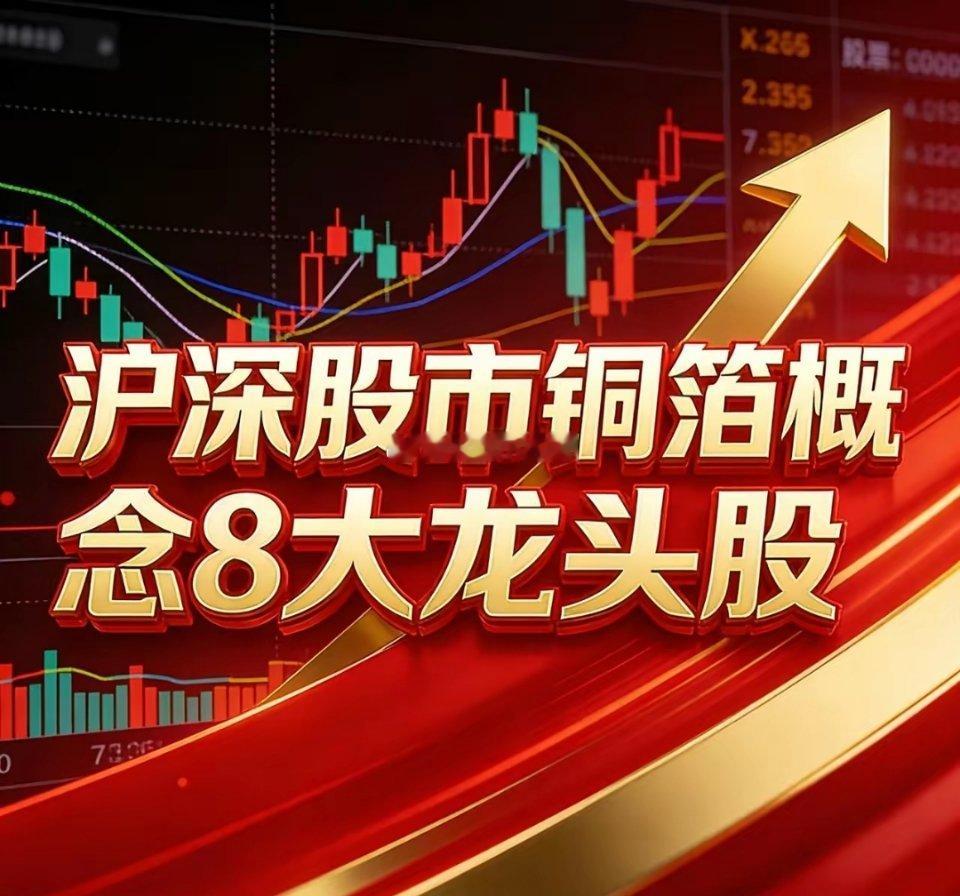 沪深股市铜箔概念8大龙头股1. 铜冠铜箔(301217):收盘价33.92元,HVLP4高端电解铜箔量产,PCB用高频高速铜箔技术领先2. 诺德股份(600110):收盘价7.30元,4.5μm及以下极薄锂电铜箔技术领先,6μm以下产品出货占比高,全球四大生产基地3. 嘉元科技(688388):收盘价45.56元,超薄锂电铜箔与电子电路铜箔双布局,固态电池用铜箔研发领先4. 德福科技(301511):收盘价31.25元,锂电铜箔与电子电路铜箔双龙头,HVLP高端铜箔技术国内领先5. 中一科技(301150):收盘价46.39元,高性能电解铜箔专家,单双面光铜箔技术积累深厚,云梦、安陆两大生产基地6. 宝明科技(002992):收盘价25.50元,复合集流体(PET/PP铜箔)技术领先,颠覆性路线布局者7. 逸豪新材(301176):收盘价26.71元,电子铜箔全产业链布局,覆盖PCB、锂电池等多领域,研发实力强8. 洪田股份(603800):收盘价50.60元,复合铜箔龙头,磁控溅射+水电镀工艺技术壁垒高注:个人观点,仅供参考,不作为投资建议
