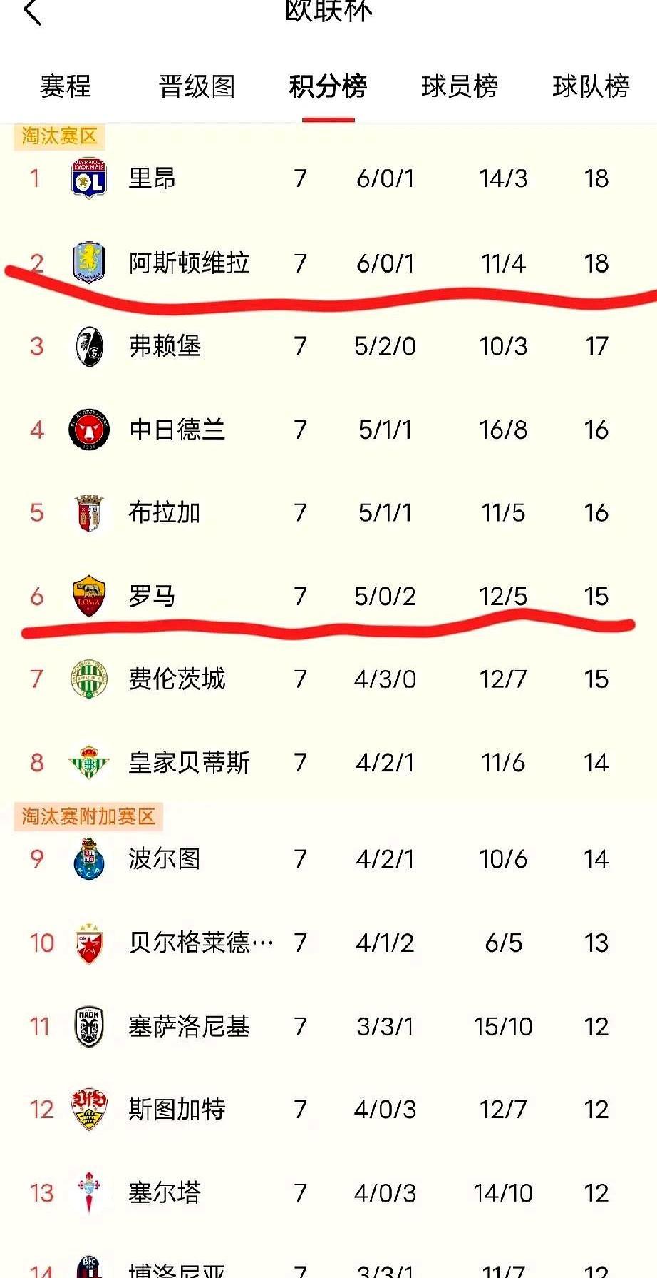 18分提前出线,最稳的竟是里昂 别只盯着英超。 欧联第7轮打完,里昂6胜1负,净胜球+11,一条线压过维拉,坐上头把交椅。 法甲今年欧战积分跌到第五,他们再不拼,下赛季欧冠名额得缩水,全队等于给自己打工,场场当决赛踢,结果真踢出了决赛味。 维拉也18分,净胜球少4个,排第二。 桑乔头球破冰,连场造点,租半年即插即用,埃梅里算盘珠子噼啪响:英超争四烧钱,欧联刷钱更快,赢一场奖金270万欧,外加门票和market pool,进16强已经锁定2000万欧落袋,冬窗不用卖人也有预算。 罗马15分排第六,四连胜里3场零封,20岁皮西利两场3球,直接把穆里尼奥留下的防守骨架升级成青年近卫军。 末轮打希腊人,拿1分就进前八,拿0分也能蹭附加赛,德罗西把欧联当练兵场,联赛反而轮换,算盘一样精。 斯图加特掉第9,德甲三队集体晃悠,药厂、法兰、斯图谁也没提前上岸,最后一轮要火并。 欧战积分德国正跟英超抢第二,每场输赢都关联赛季奖金,俱乐部比球迷更慌。 新赛制8轮联赛,前八直通,9到24踢两回合附加赛,少了主客双循环,冷门减半,强队翻车概率更低,钱却更集中。 里昂、维拉早早锁位,等于少踢两场生死战,省下的体能换成联赛抢分,里外里都是净利。 看球别光看谁进球,先瞄积分榜,再看净胜球,最后算奖金,套路一目了然: 赢早点,赚多点,踢少点,赛季后段才能活得轻松。