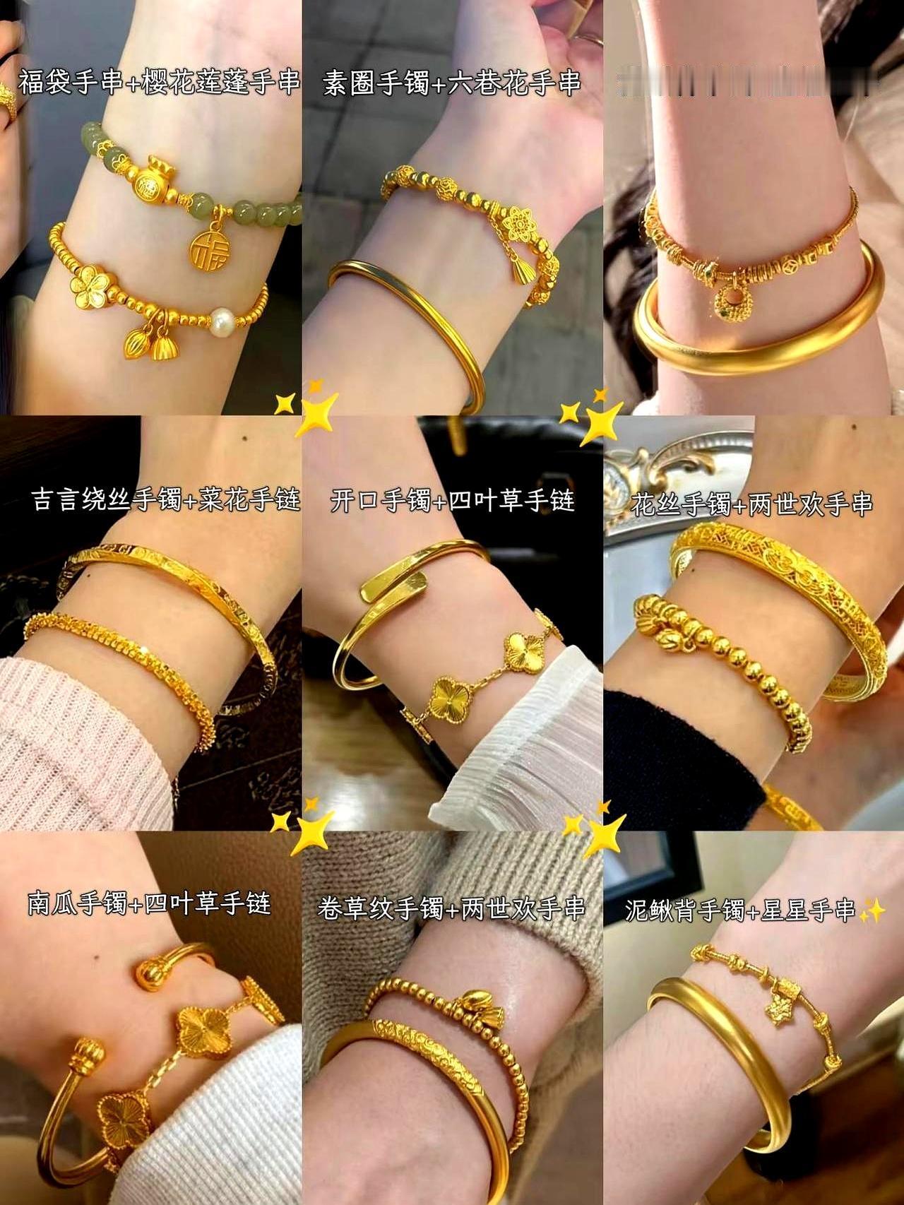 再不做减法,手腕先被金镯压垮。 金价飙到800,年轻人却越买越多。水贝柜台前,古法素圈、转运珠、细链堆满手臂,像给手腕戴了副镣铐。 真正好看的叠戴,其实只留三条:最粗那条贴腕,当主角;中间一条镂空,透气;最外一条细链,收尾。粗细拉开,颜色统一,手腕立刻显瘦一圈。 怕撞款?把翡翠镯子套在黄金外侧,温润撞闪耀,低调又贵气。 明天就用这3句话: 1. 先量腕围,留一指空隙。 2. 粗在内,细在外,绝不反着来。 3. 混搭只选同色系,玫瑰金也不行。 照着抄,出门被问链接。