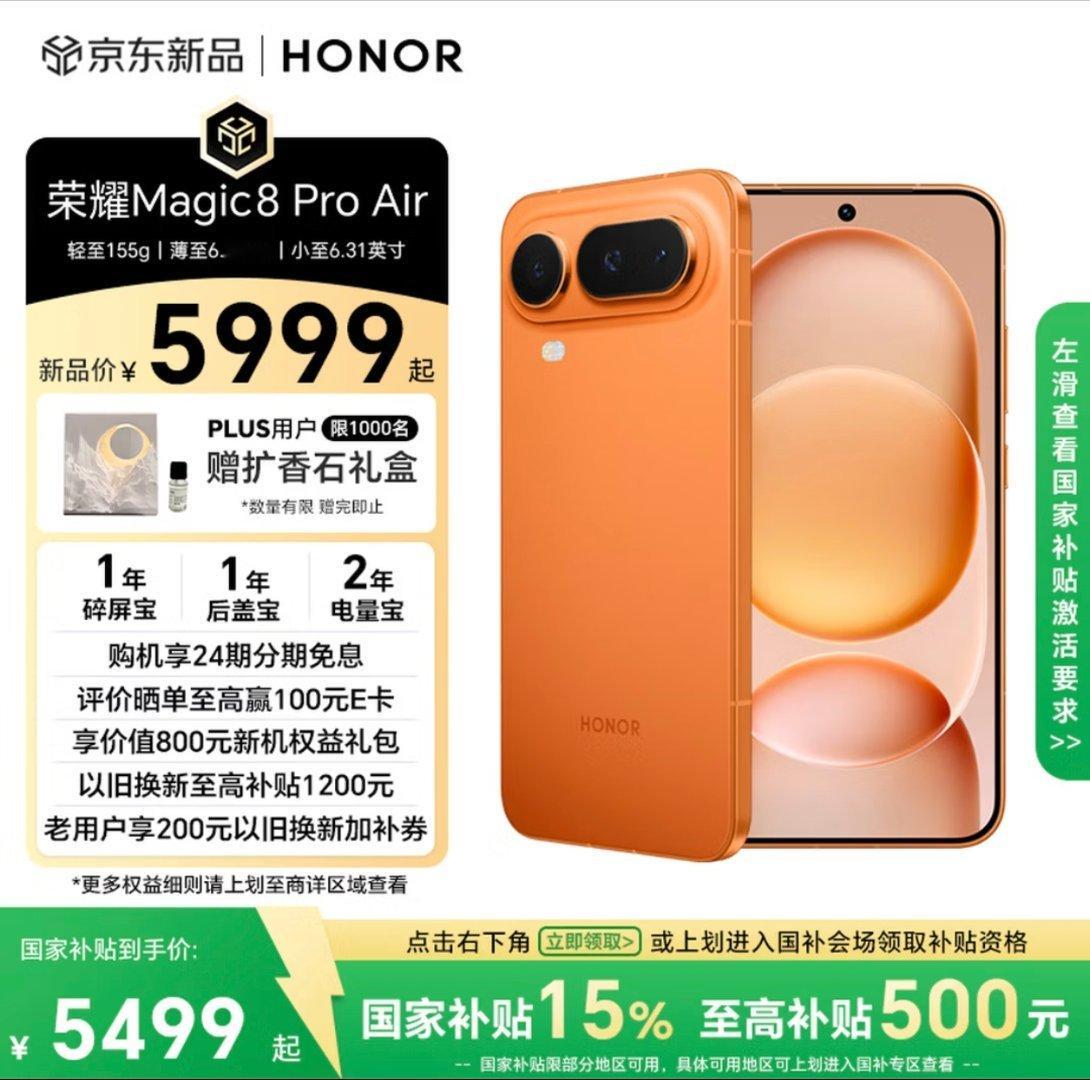 iPhoneAir直降2500块叠加国补之后,5499起。5499,隔壁阿耀的Air可以买顶配了。极限二选一,5499的价格,你选256G的iPhone Air还是1T的荣耀Magic8 Pro Air?