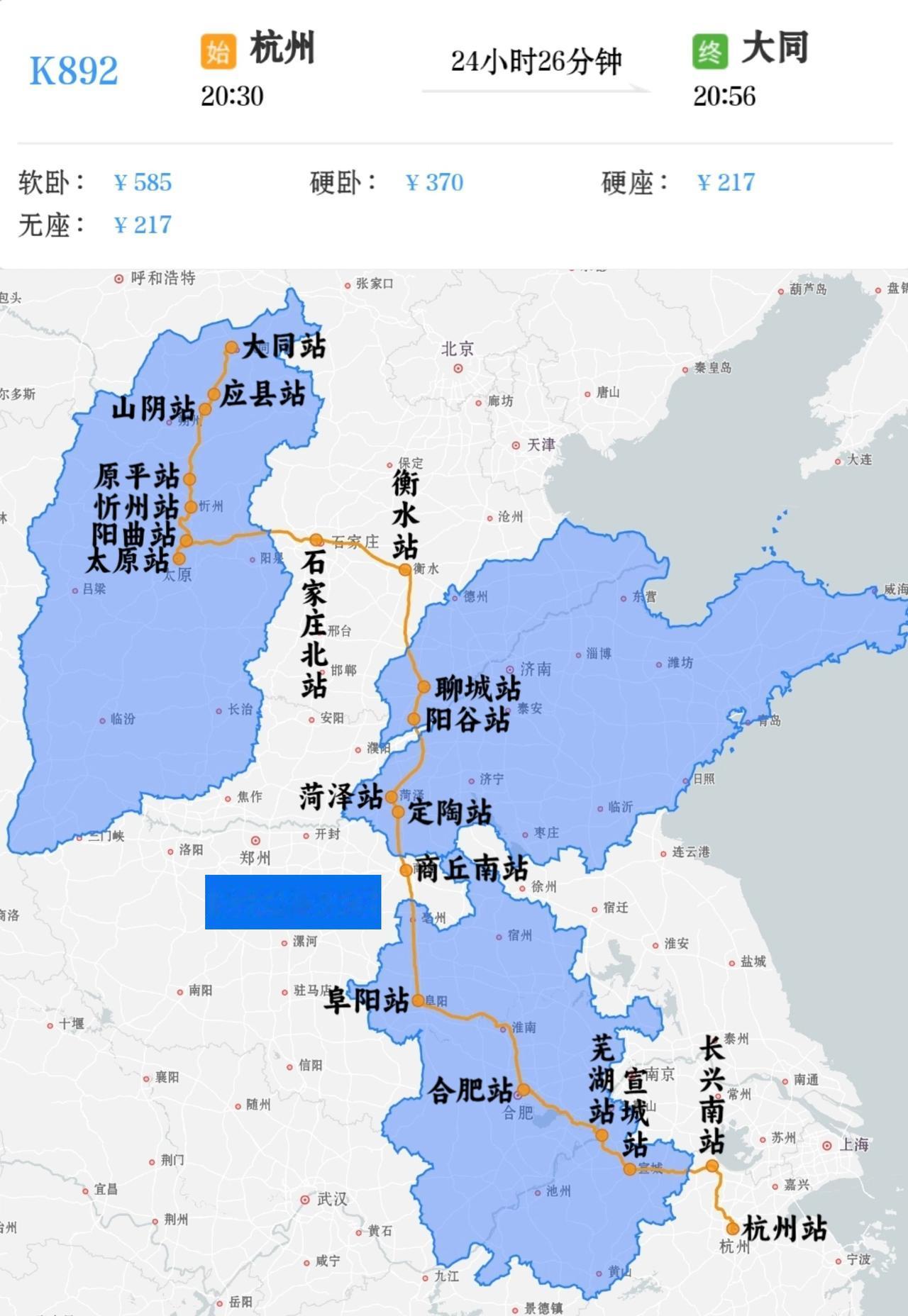 2026年1月28日起杭州到大同K892/K893次列车增加停靠石家庄北站,杭州站20点30分开,第二天13点45分到石家庄北站,太原站换向不变。