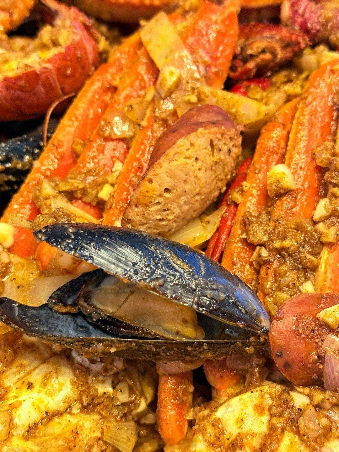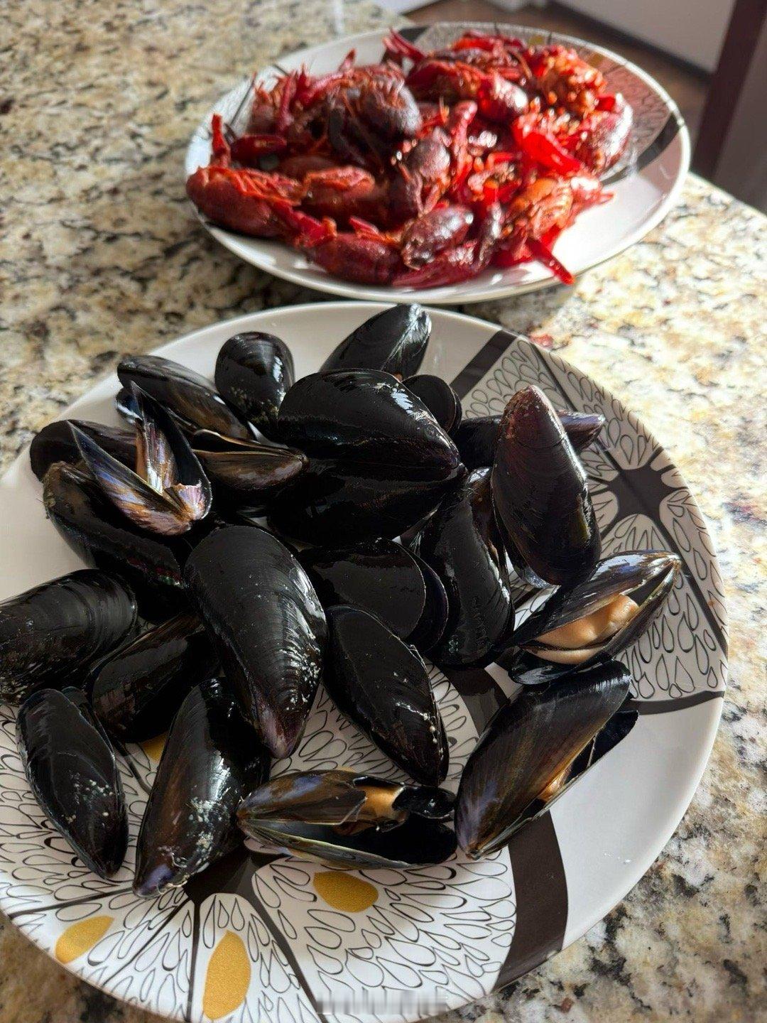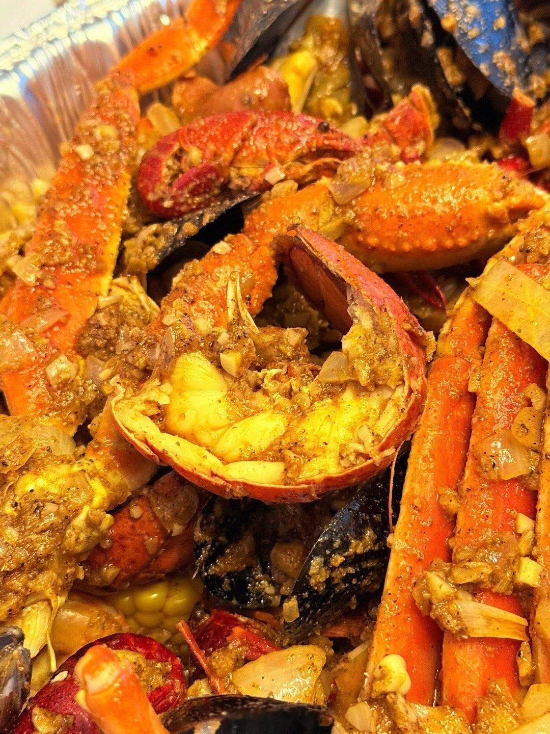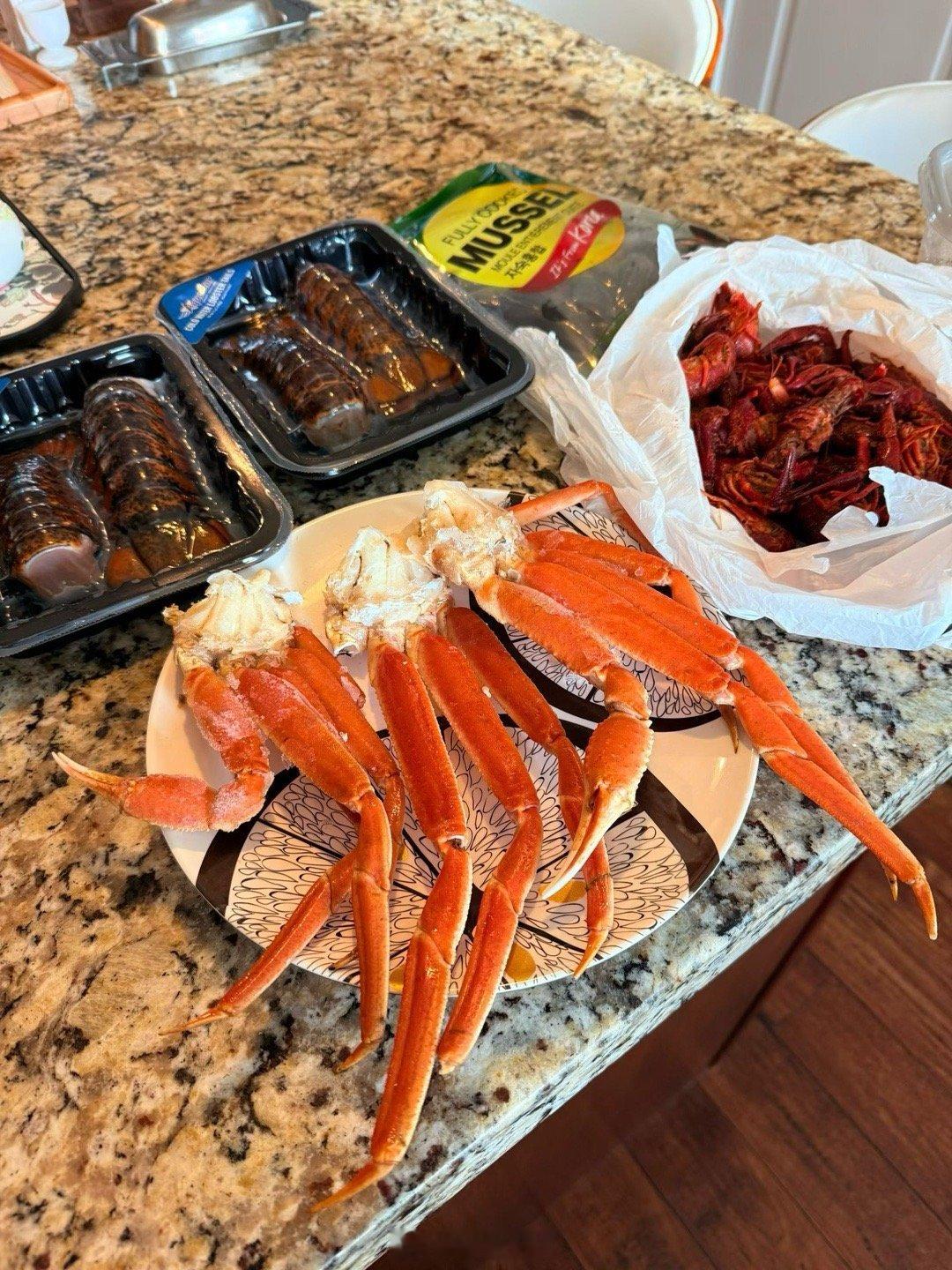 昨天乖妈又做Louisiana Cajun style海鲜招待客人,三人放开肚子吃还有剩。这一大盘在蟹屋吃得好几百。