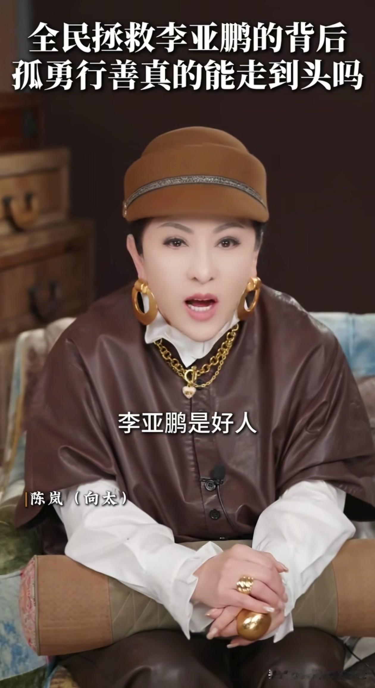 向太聊李亚鹏做公益,把自己逼到绝境,既现实又中肯, 但是她忽略了一点, 李亚鹏坚持了二十年,他要是想放弃早就放弃了。因为他不只是一个公益项目的负责人,他还是一个唇腭裂孩子的父亲。 最近向太和向华强都发视频称赞李亚鹏,也都指出了他的能力问题。向太提出,一个公益要做下去,需要赚钱的企业给它“输血”才能走得更长久。 这次因为事情发酵引发网友捐款,帮助解决了困难,捐款只能救急,不能救穷。下次再遇到困难该怎么办? 所以公益和生意一样需要经营管理,向太拿自己和李连杰发起的基金举例子,她认为应该请专业的人做专业的事,自己抽身去做自己的事,而不要把自己逼到绝境。 道理大家都懂,李亚鹏又何尝不明白?他在商场和公益这两条路上摸爬滚打这么多年,也经历了人生的坎坷挫折,难道没想过抽身而退吗?肯定想过。 他完全可以放下这副重担,去过轻松自在的日子,可他做不到。因为他的初心就是为了自己的女儿,他太清楚女儿成长路上经历过什么,太明白那些和女儿有着相似遭遇的孩子,以及背后焦灼的父母,需要的是什么。 他希望人们提起李嫣时,不只是看到她的与众不同,更能感受到这个社会给予的善意与温暖!他要将女儿的伤痕变成她的荣耀! 人和人本来就不一样,有人擅长把公益做成一份“事业”,有人却只会凭着一腔孤勇硬扛。这没有绝对的对与错,而李亚鹏,只是选择了困难的那条路,那是一个父亲最朴素的执念。 也许未来还会有困难,也许最后没能活成别人眼中“专业”的样子,甚至可能走到力不从心的那一步。但我觉得,他依然会坚守! 大家觉得,李亚鹏应不应该像向太说的那样,请专业的人来做专业的事?把这份公益事业交出去? 李亚鹏