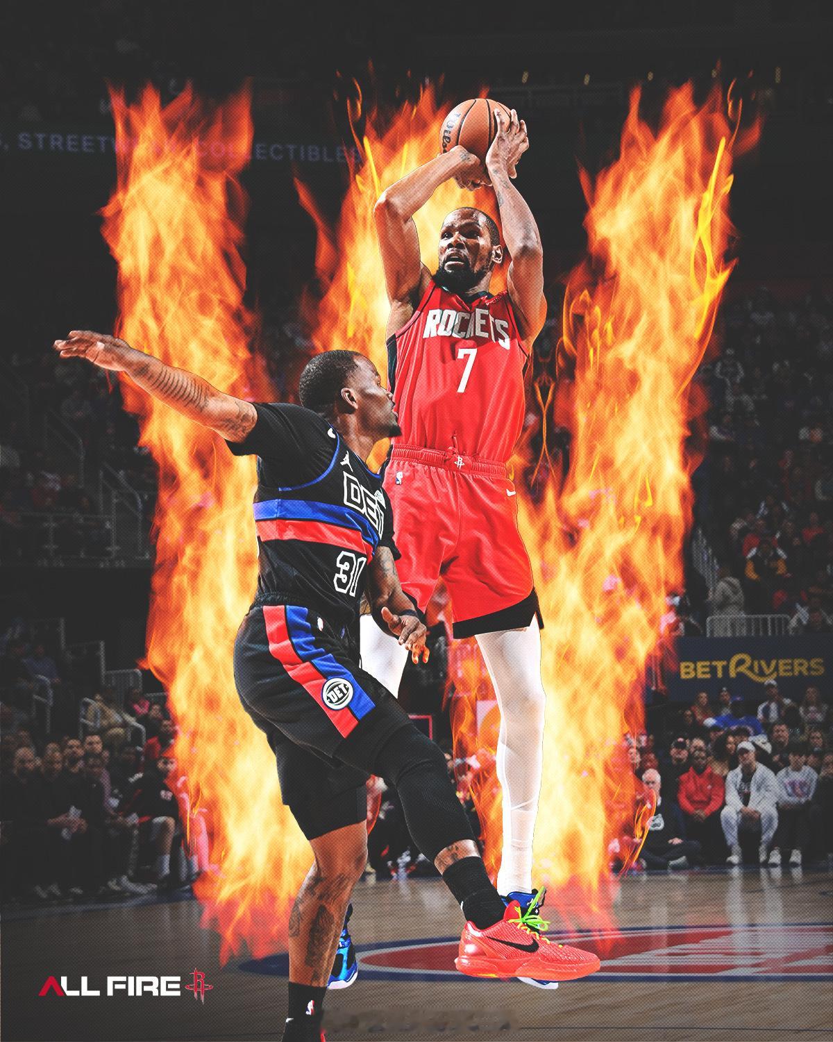 杜兰特生涯18年里已连续17个赛季场均得分25+,他还是15届全明星和4届得分王。火箭vs活塞火箭战胜活塞休斯顿火箭