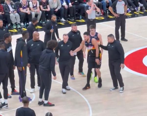 倒霉啊!布克也受伤了! 对阵老鹰,杰伦格林打着打着腿筋受伤,退出比赛。然后布克又踩到奥孔武德脚上,90度崴脚受伤离场。一场比赛,两个得分手全无了,上哪儿说理去。 这个阶段,西部的火箭、太阳、湖人、森林狼战绩咬的非常紧,每场比赛打完的排名都在变化,现在没了布克,太阳可能要守不住西部前6的位置了。 目前排名: 4、火箭:26胜16负,9.5(胜差) 5、湖人:26胜17负,10 6、太阳:27胜18负,10 7、森林狼:27胜18负,10 果然,没比赛的湖人排名又上升了....[捂脸]