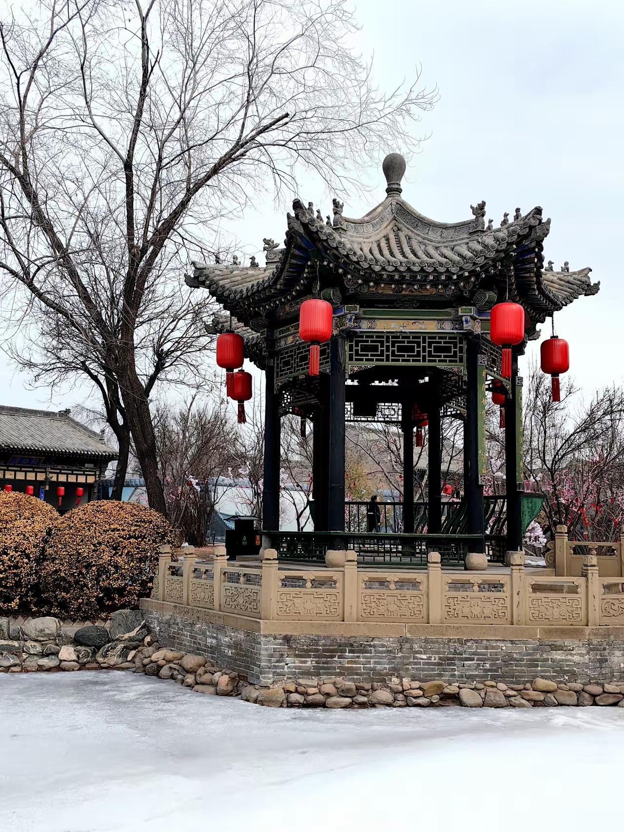 记录我的2026古风亭台楼阁,红灯笼映衬,冬日静谧之美。