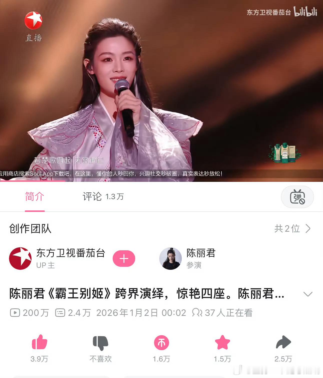 陈丽君跨年舞台《霸王别姬》b站播放量破两百万了,还有杂志破千万,真是开门红!