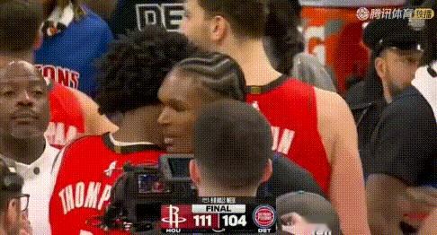 骄傲!阿门兄弟斗法,母亲看台狂笑。 3节时兄弟俩争球撞一起母亲笑(图3);末节阿门突破弟弟又笑(图1-2)。今天谁赢不重要,妈妈开心大笑就完了! 阿门15+9+7+2 抢断(11中5);奥萨尔表现也不差12+*+3+2抢断(8中5),2节一度连得6分可惜受限犯规。 图4-5:阿杜、申京羡慕极了,赛后一起见妈。