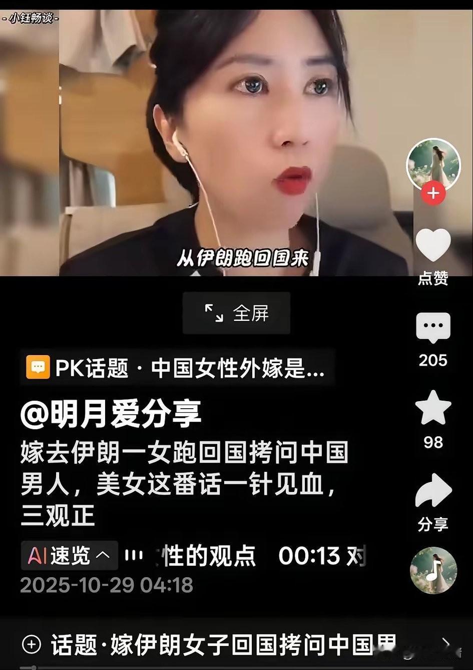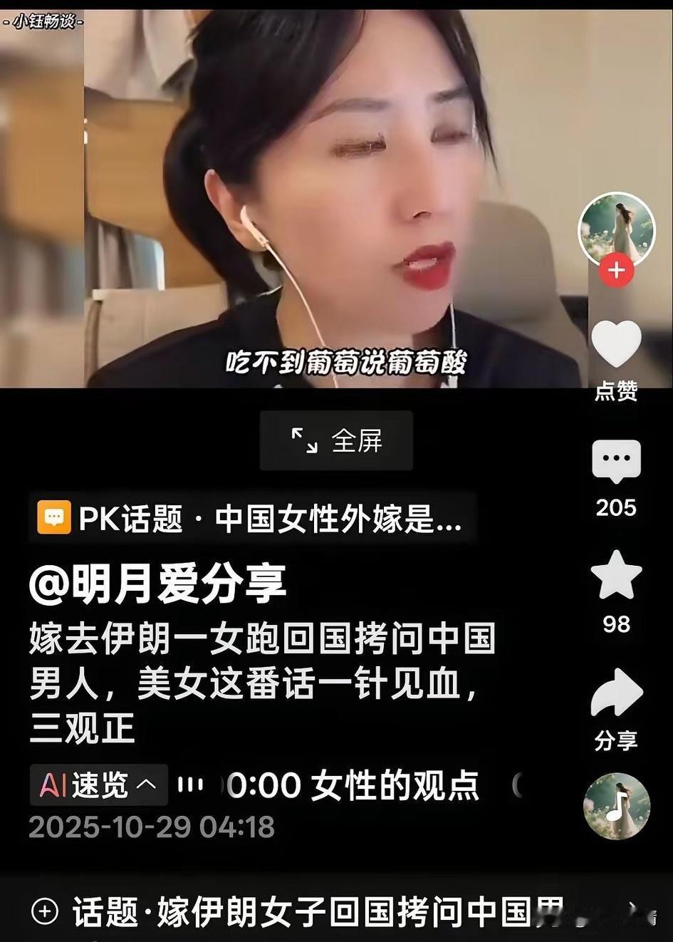 中国女子远嫁伊朗,如今回国炫耀,在网上分享自己的生活!按道理来说!已经下去了伊朗! 应该积极融入伊朗的生活,好好的戴上头巾,尊重当地的风土人情,不要露脸不要出门,更不要接触当地的异性! 实际也没有必要分享自己在伊朗的生活,毕竟嫁出去的女儿泼出去的水!利用中外文化差异去赚取流量就不好了! 这不网友和她吵了起来,她直接反驳,都什么年代了?还女子守血脉,我嫁伊朗怎么了?我还是中国人,为什么不能回国? 你们国内的男人就是吃不到葡萄说葡萄酸,明明自己不够优秀,还不让国内嫁国外! 可以看出她非常的自豪嫁到伊朗,俗话说人往高处走,水往低处流!搞不清楚她为什么要去中东,亲自戴上了头巾! 跨国恋固然新鲜,但是中外风俗差别很大,尤其是伊朗,那里以古兰经为法律,束缚女性的自由,而且男生大多大男子主义! 现实生活中的夫妻难免有矛盾摩擦,希望你好自为之!不要最后伤痕累累,在网上哭泣!只要不回国,在伊朗幸福生活就祝福你! 大家对于这些远嫁伊朗还在国内互联网赚流量的这些人怎么看? 跨国恋幸福吗? 伊朗 伊朗华人撤离 远嫁国外生活 伊朗女性形象